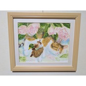 薔薇の下 額装 縦26.5cm 横31.5cm 色 ナチュラル 送料込みです。 絵画の種類...水彩画 形式...額縁入り 主題...動物 春 主な画材...水彩絵の具