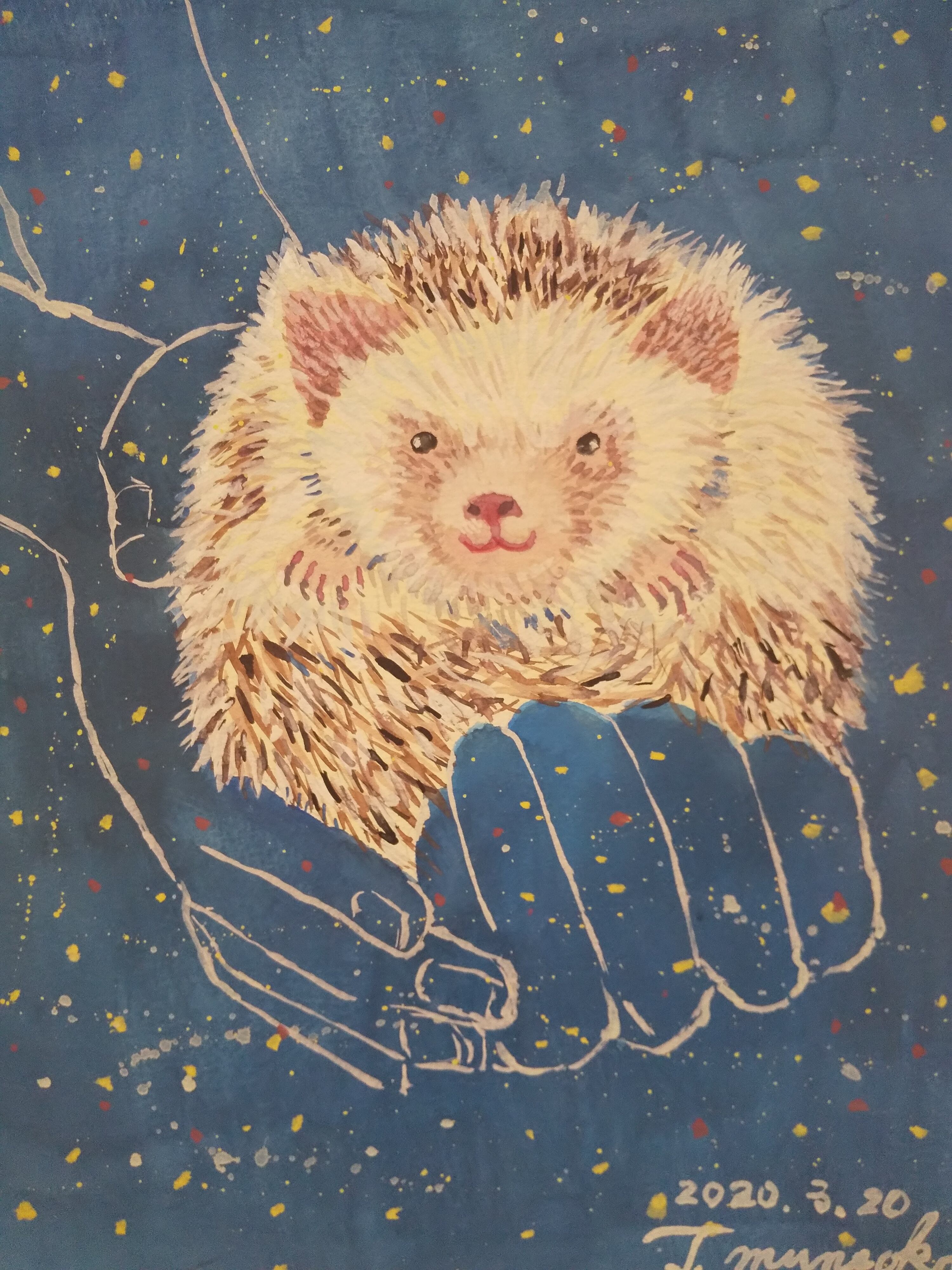 ハリネズミ 水彩 額装 サイズ 横26.5cm 縦31.5cm 色 ナチュラル 額付き