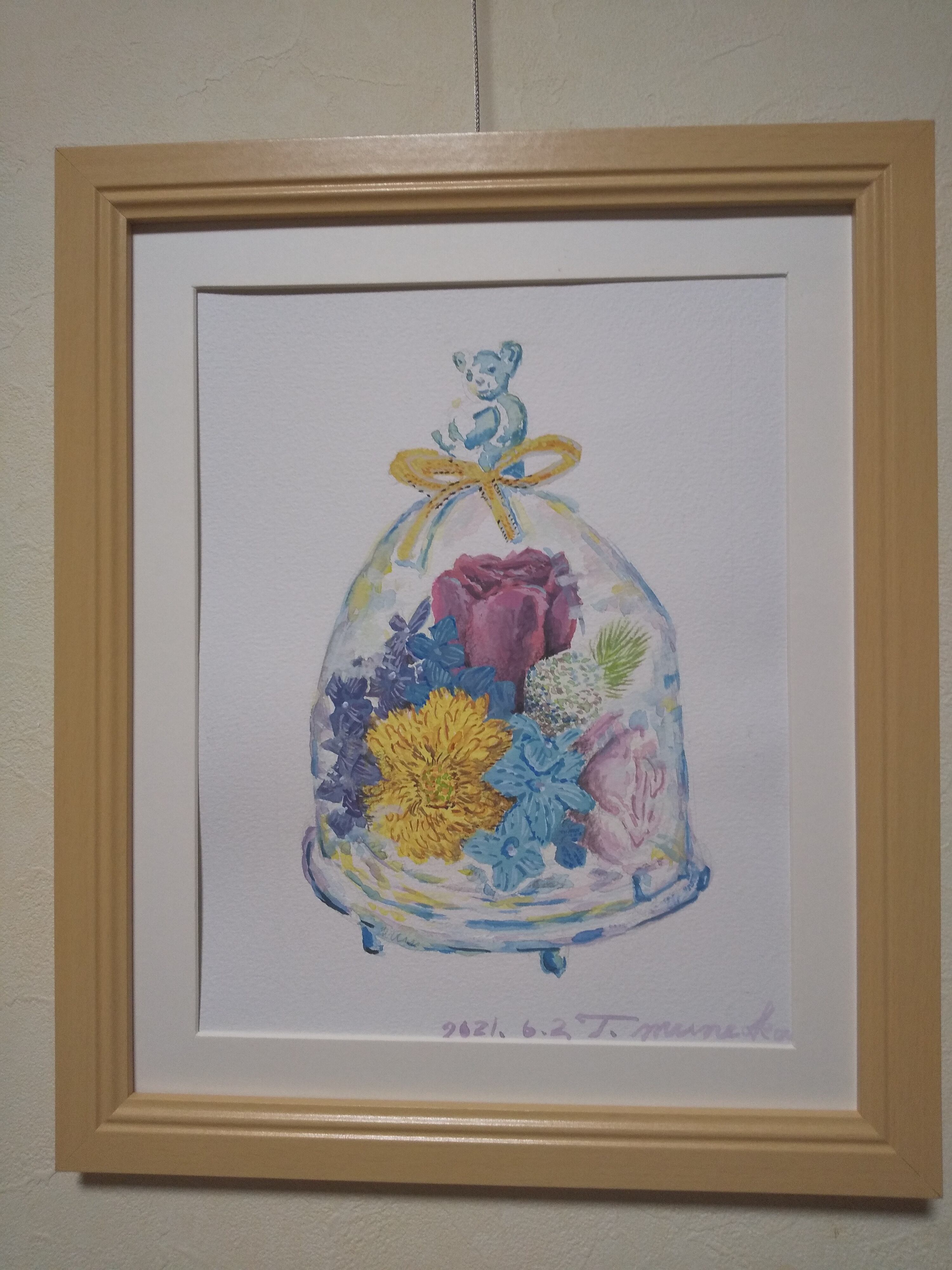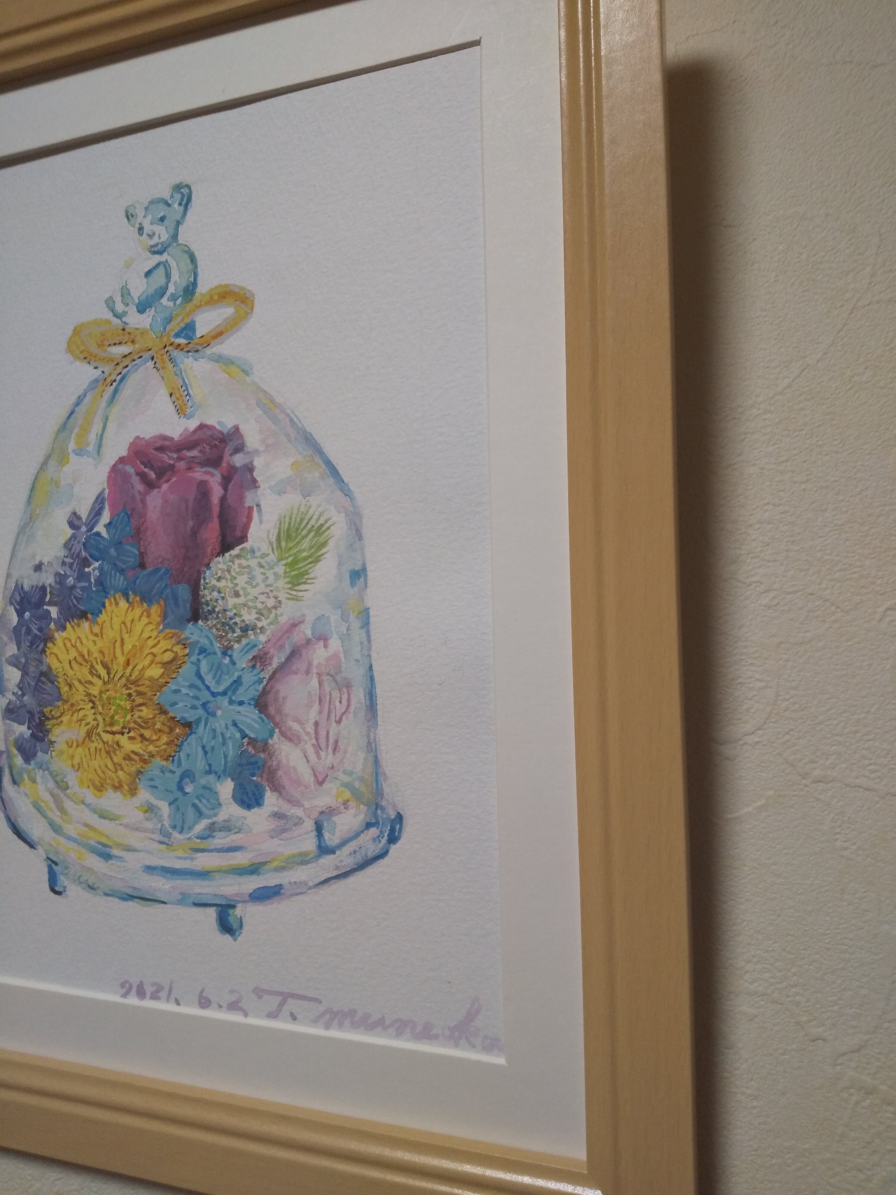 お花飾り 水彩 額装 サイズ 横26.5cm 縦31.5cm 色 ナチュラル 額付き