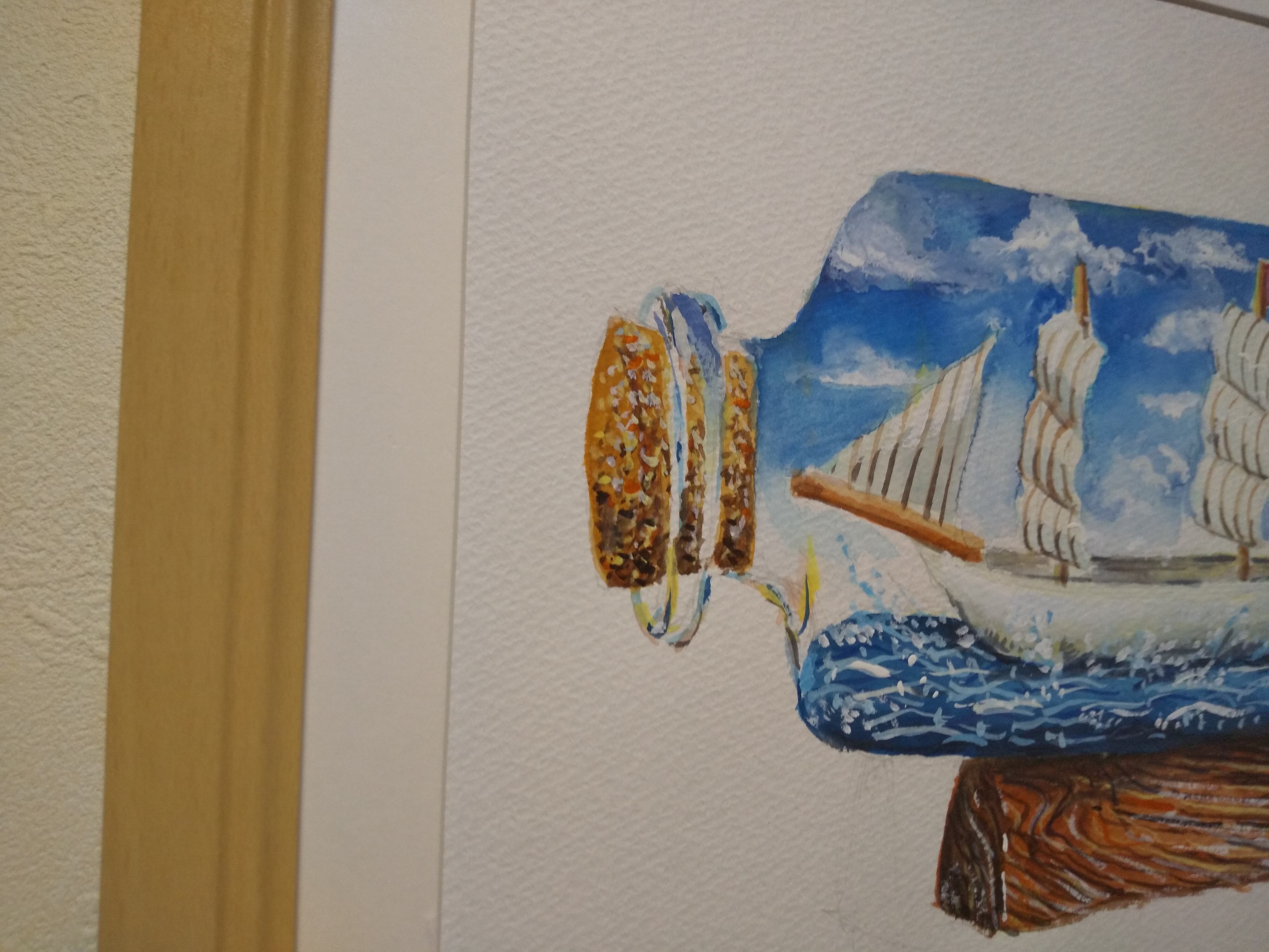 旅に出よう 水彩 額装 サイズ 縦26.5cm 横31.5cm 色 ナチュラル 額付き