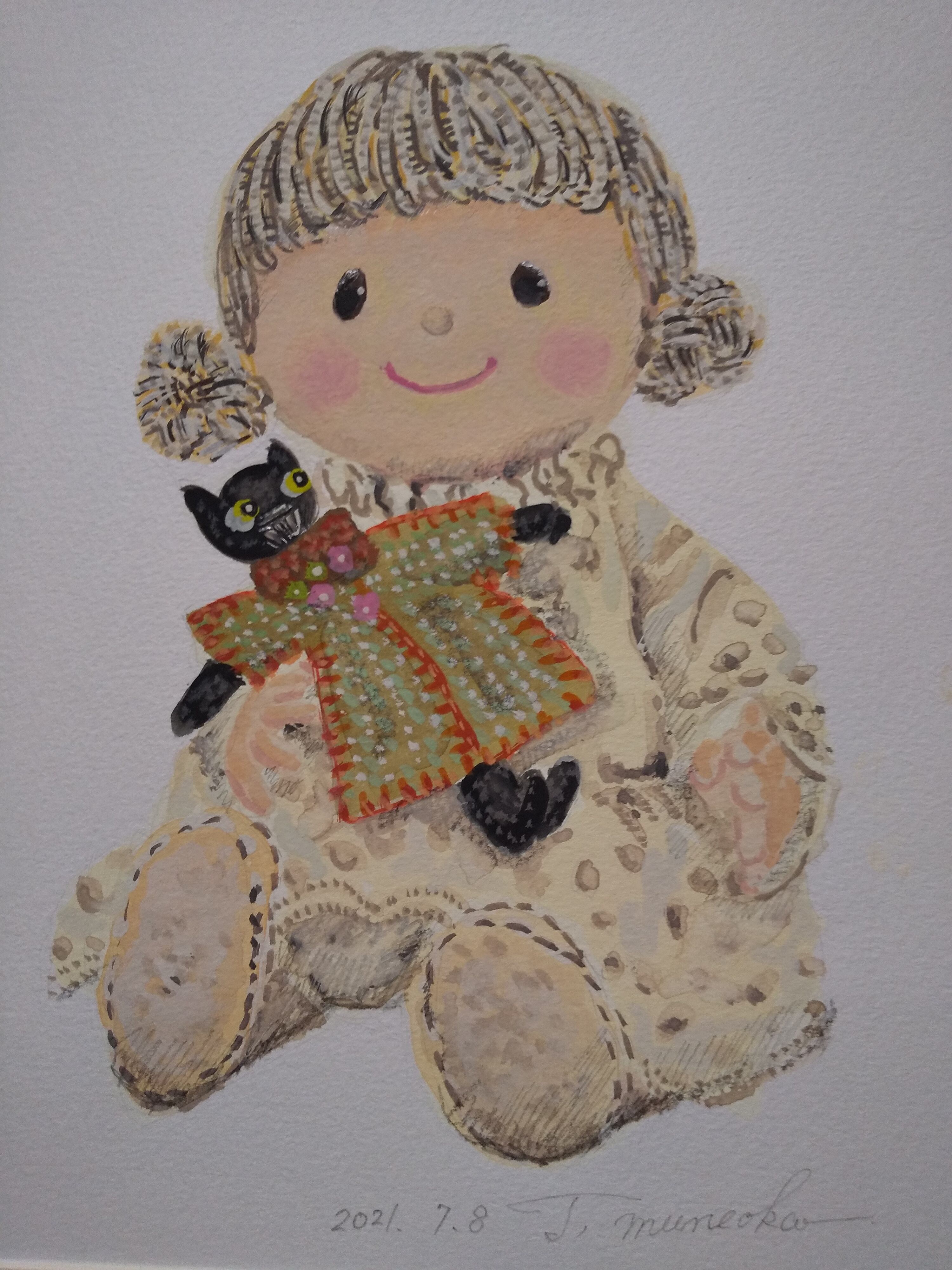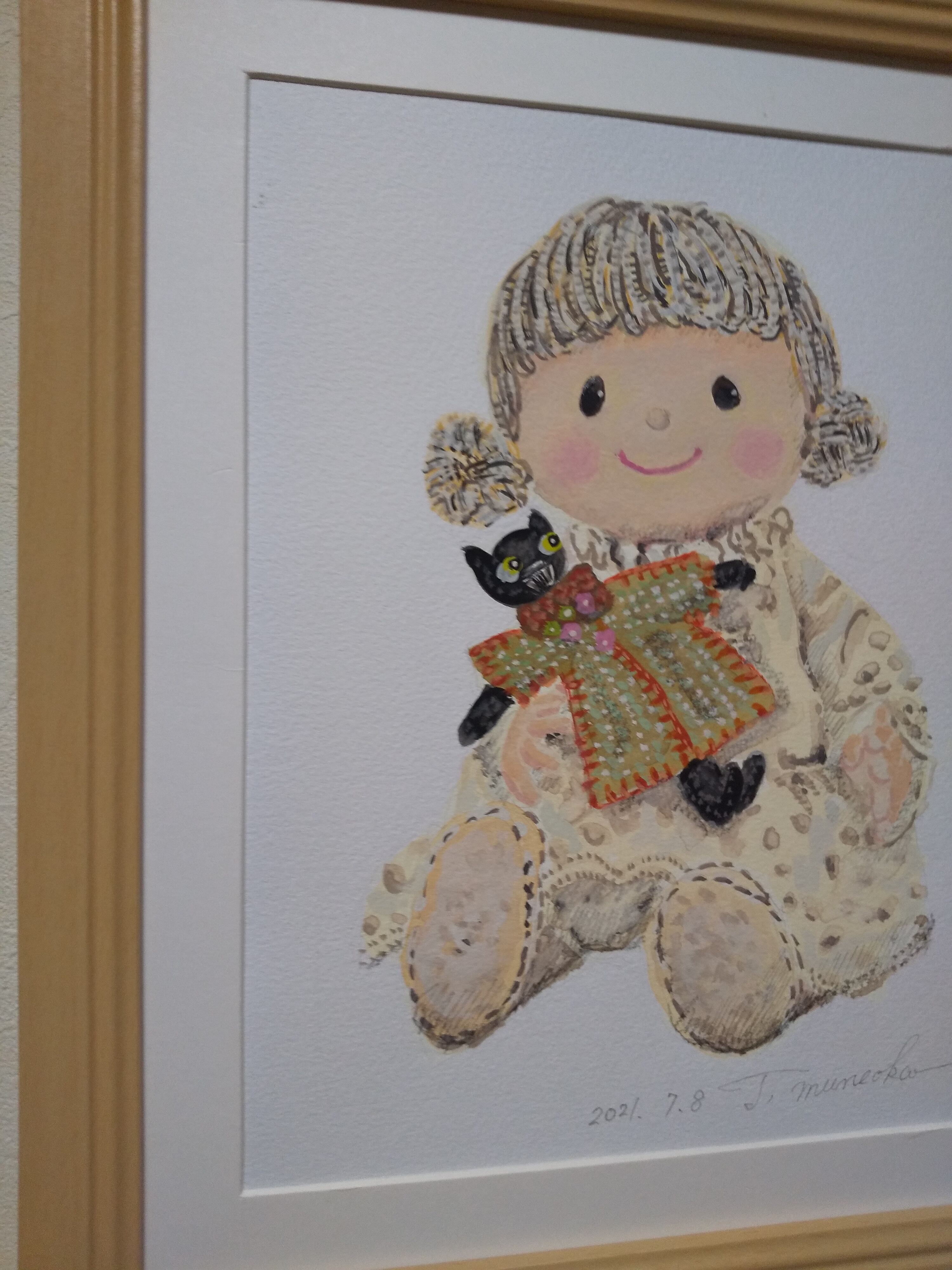 こんにちは 水彩 額装 サイズ 横26.5cm 縦31.5cm 色 ナチュラル 額付き