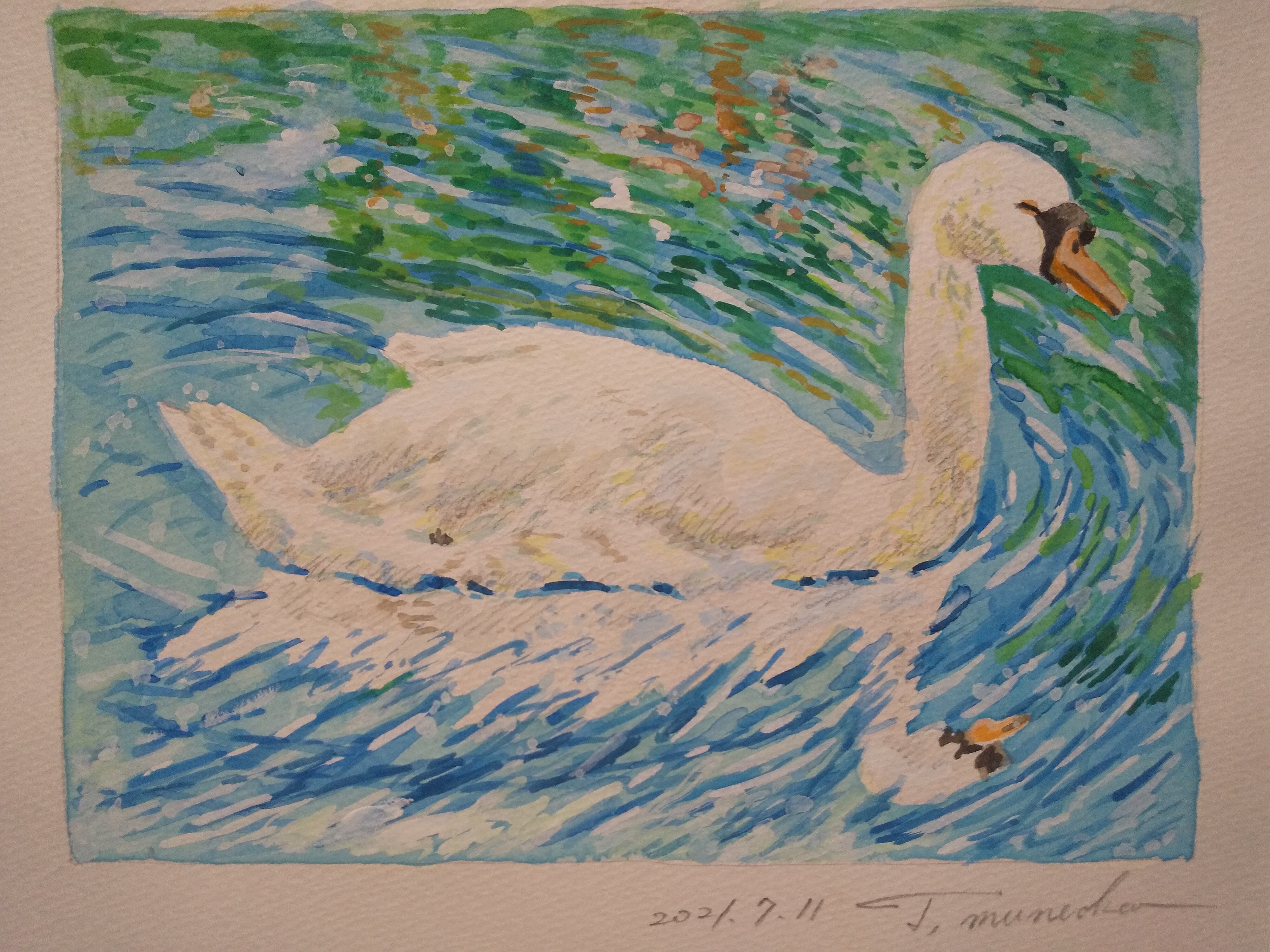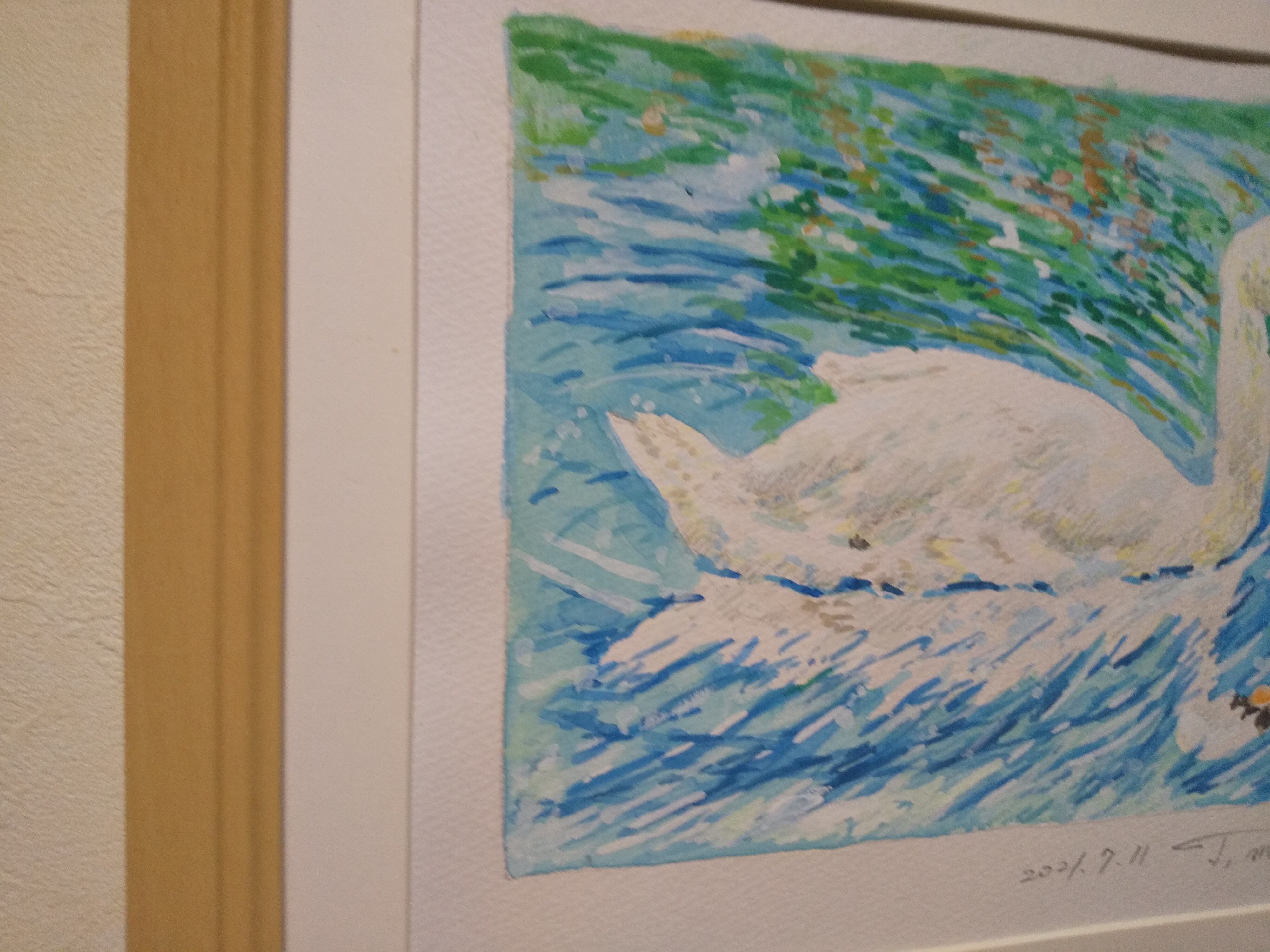 スイスイのんびり 水彩 額装 サイズ 縦26.5cm 横31.5cm 色 ナチュラル 額付き
