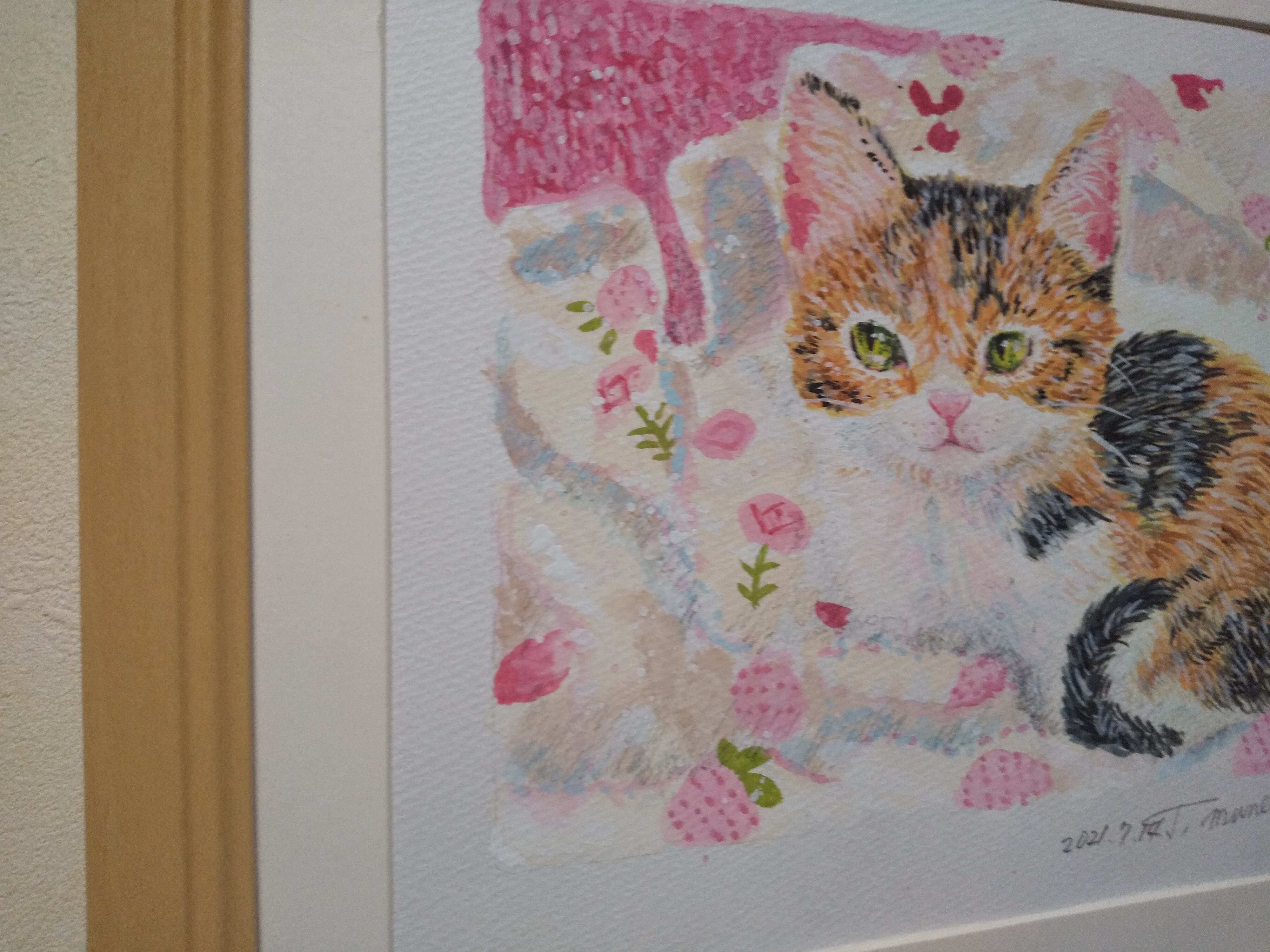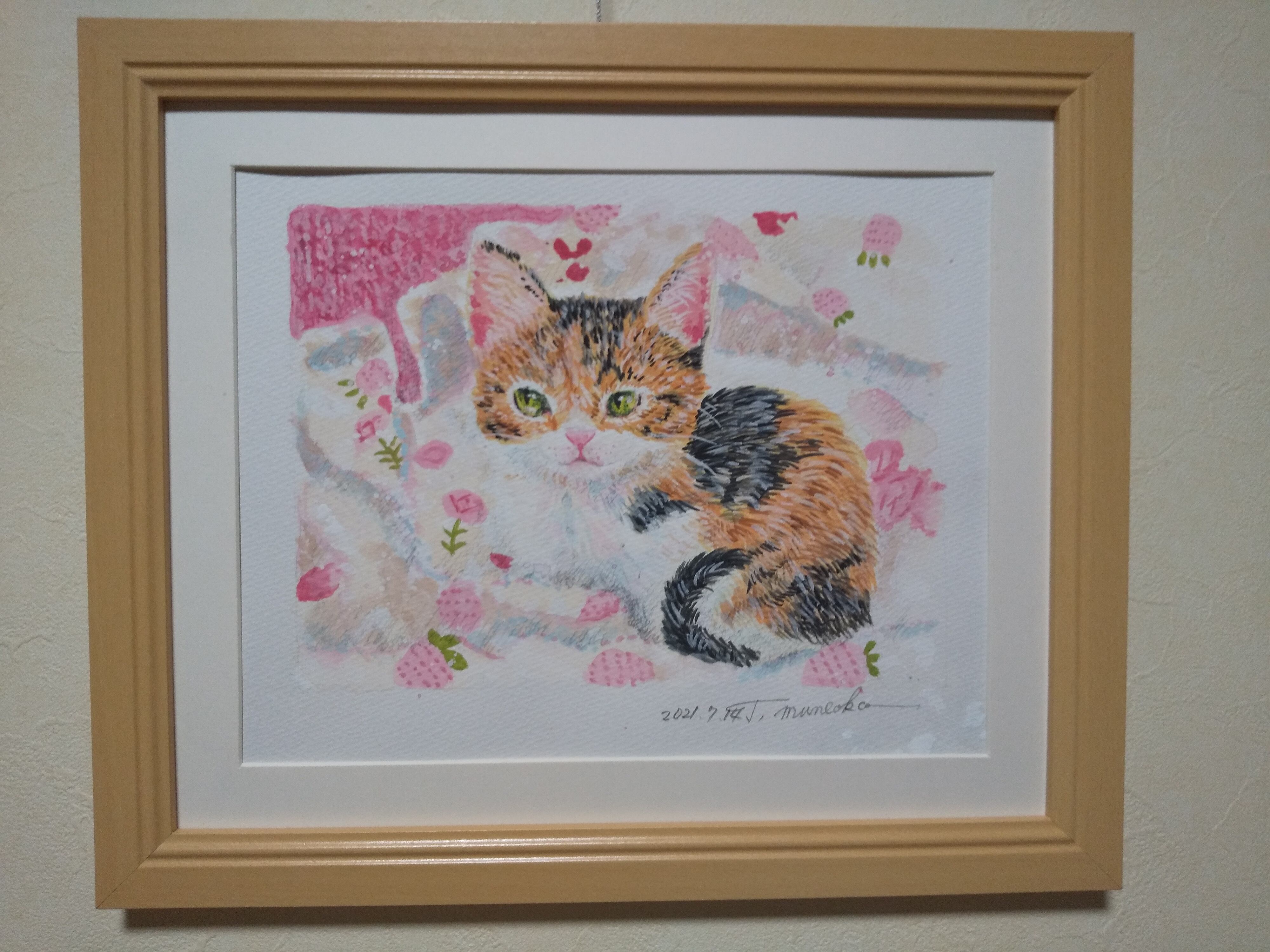 アサちゃんがきた 水彩 額装 サイズ 縦26.5cm 横31.5cm 色 ナチュラル 額付き