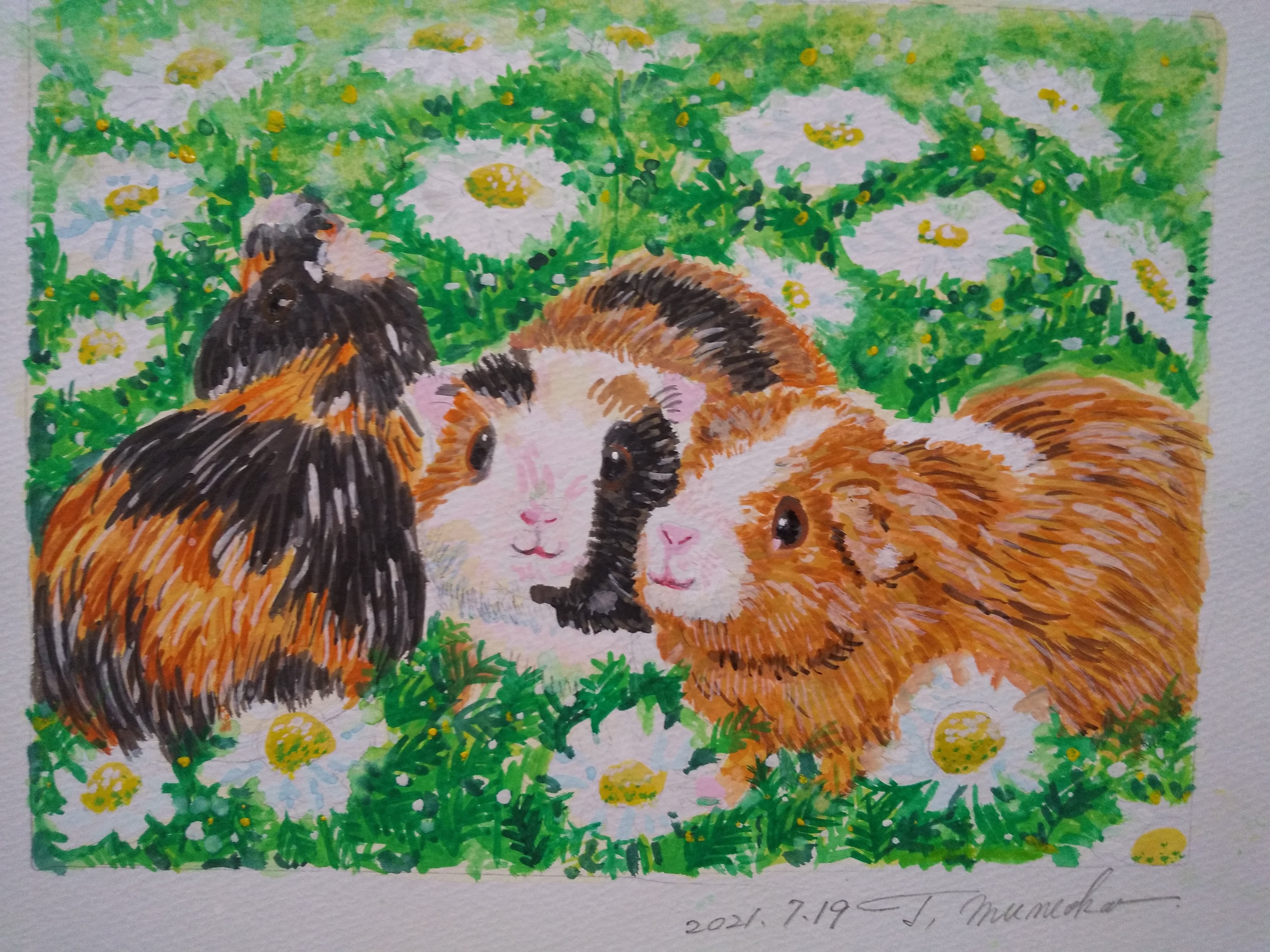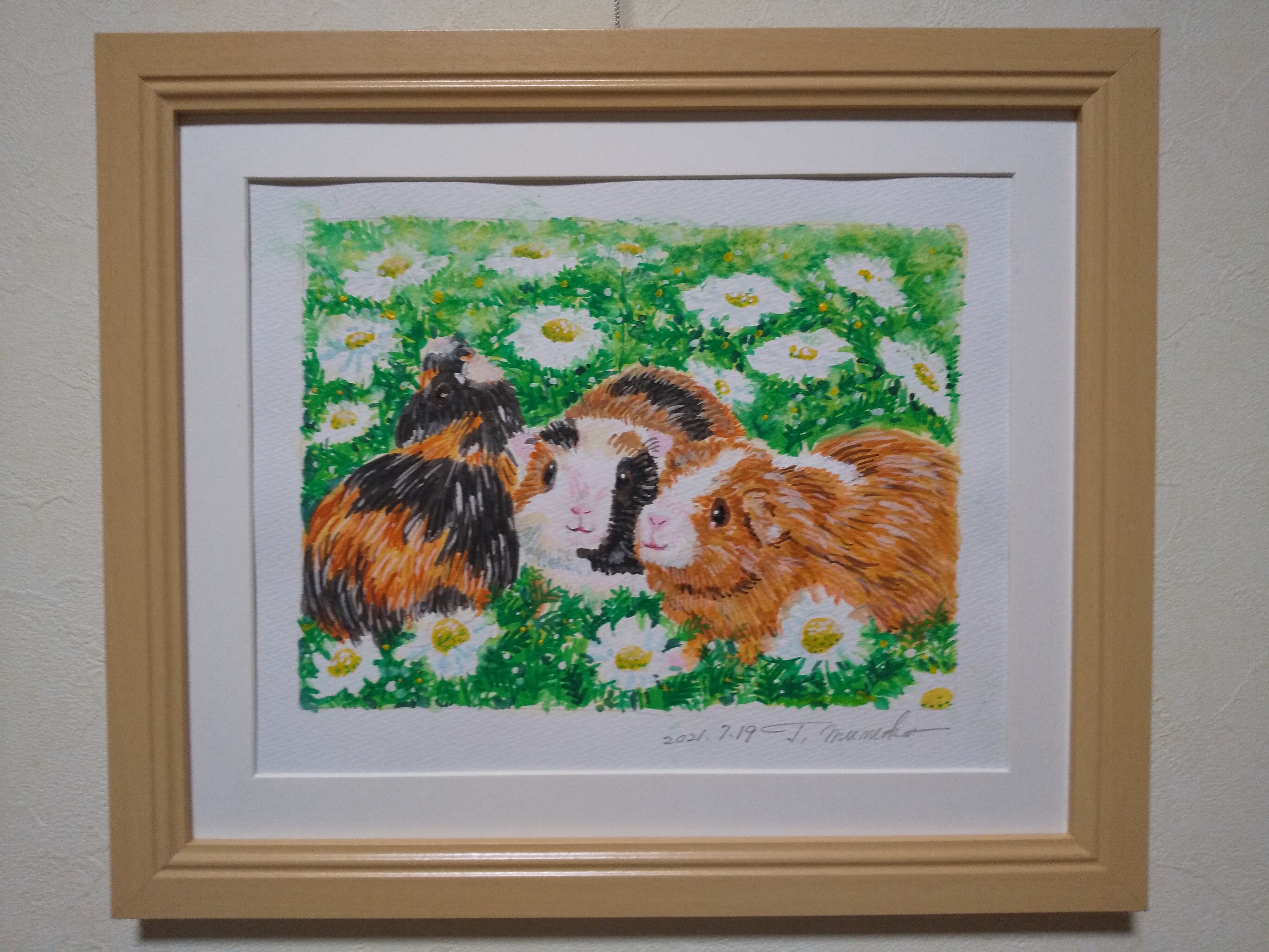 モルモットさん 水彩 額装 サイズ 縦26.5cm 横31.5cm 色 ナチュラル 額付き