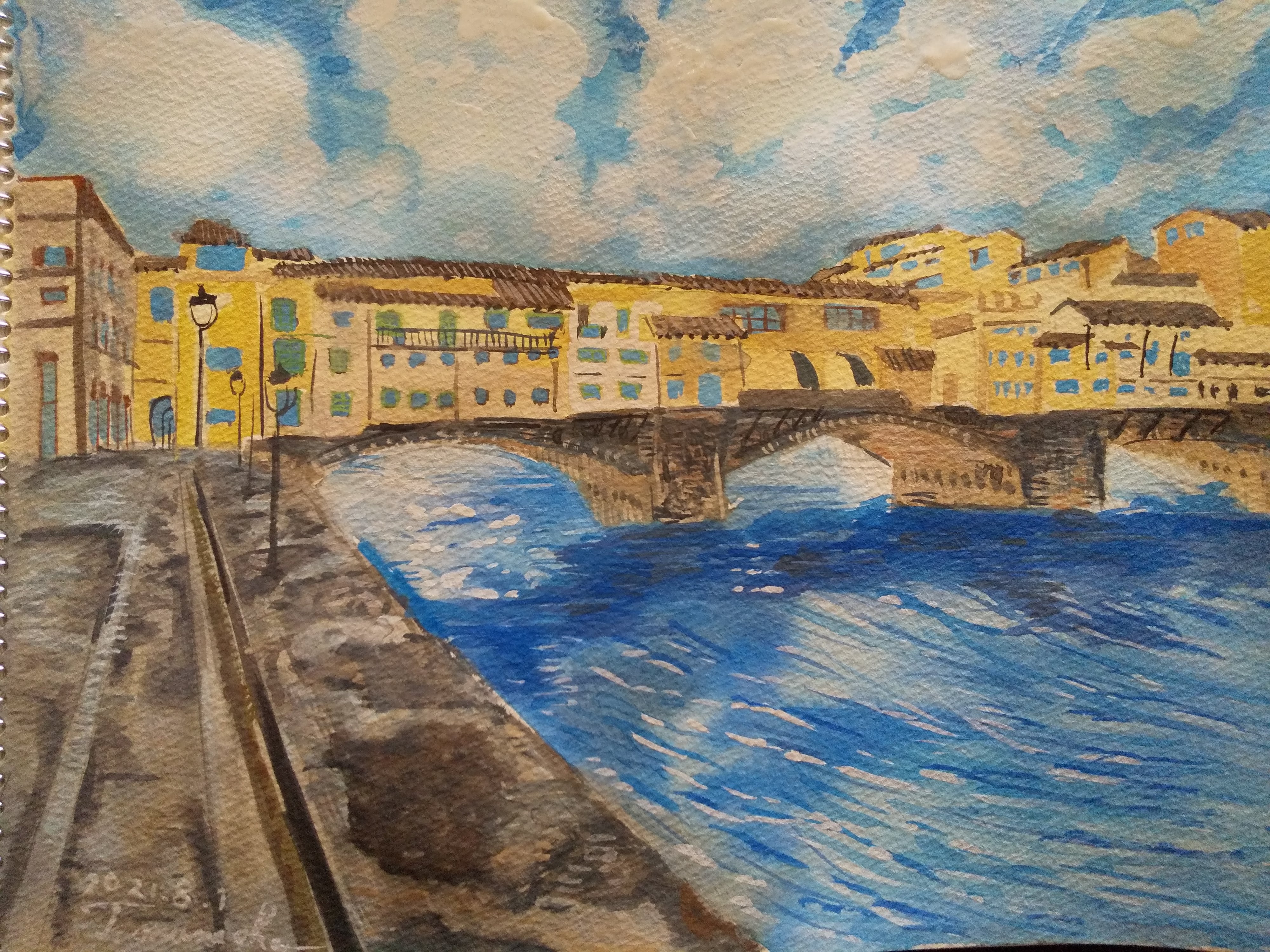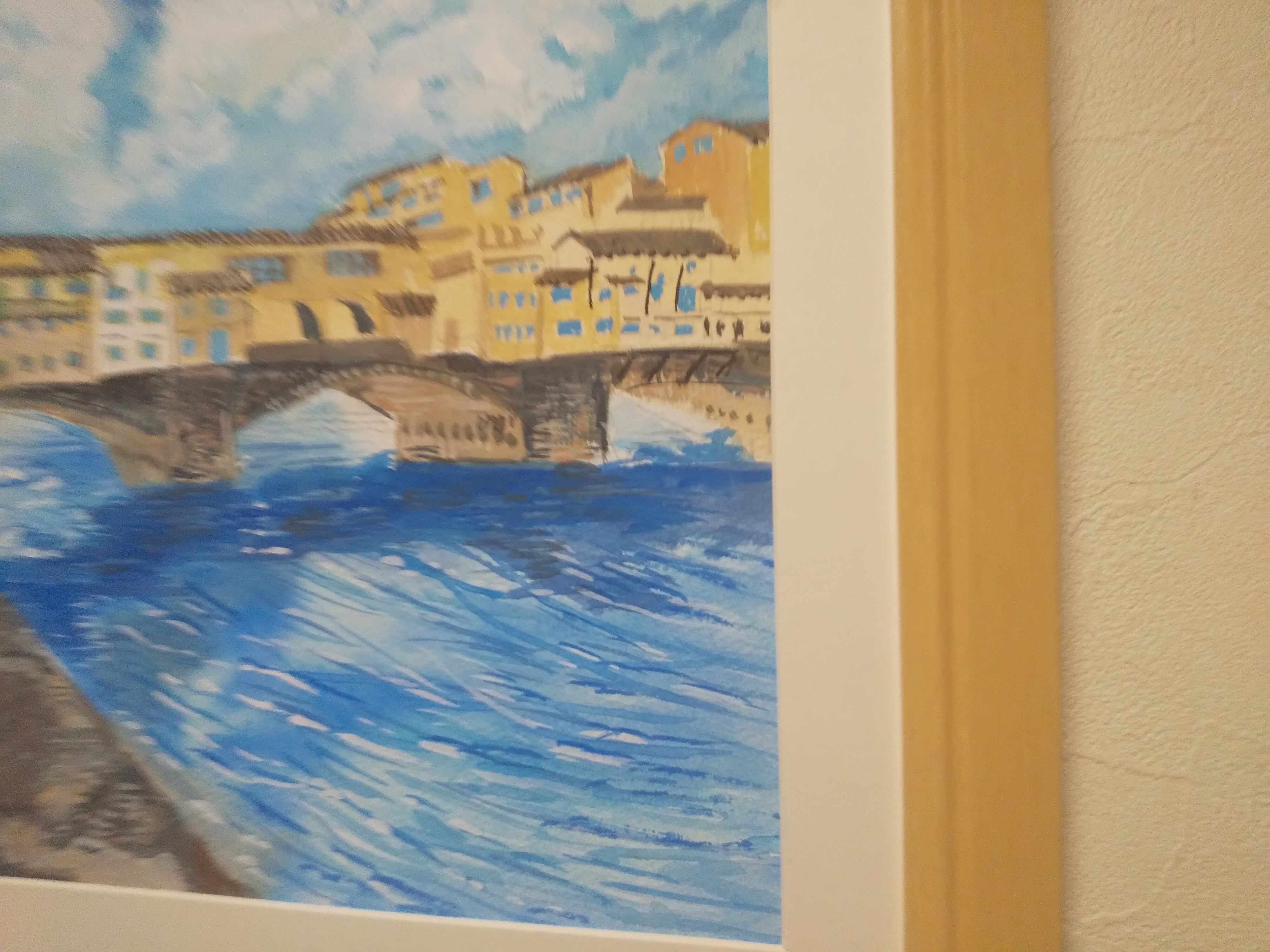 ヴェッキオ橋 水彩 額装 サイズ 縦26.5cm 横31.5cm 色 ナチュラル 額付き