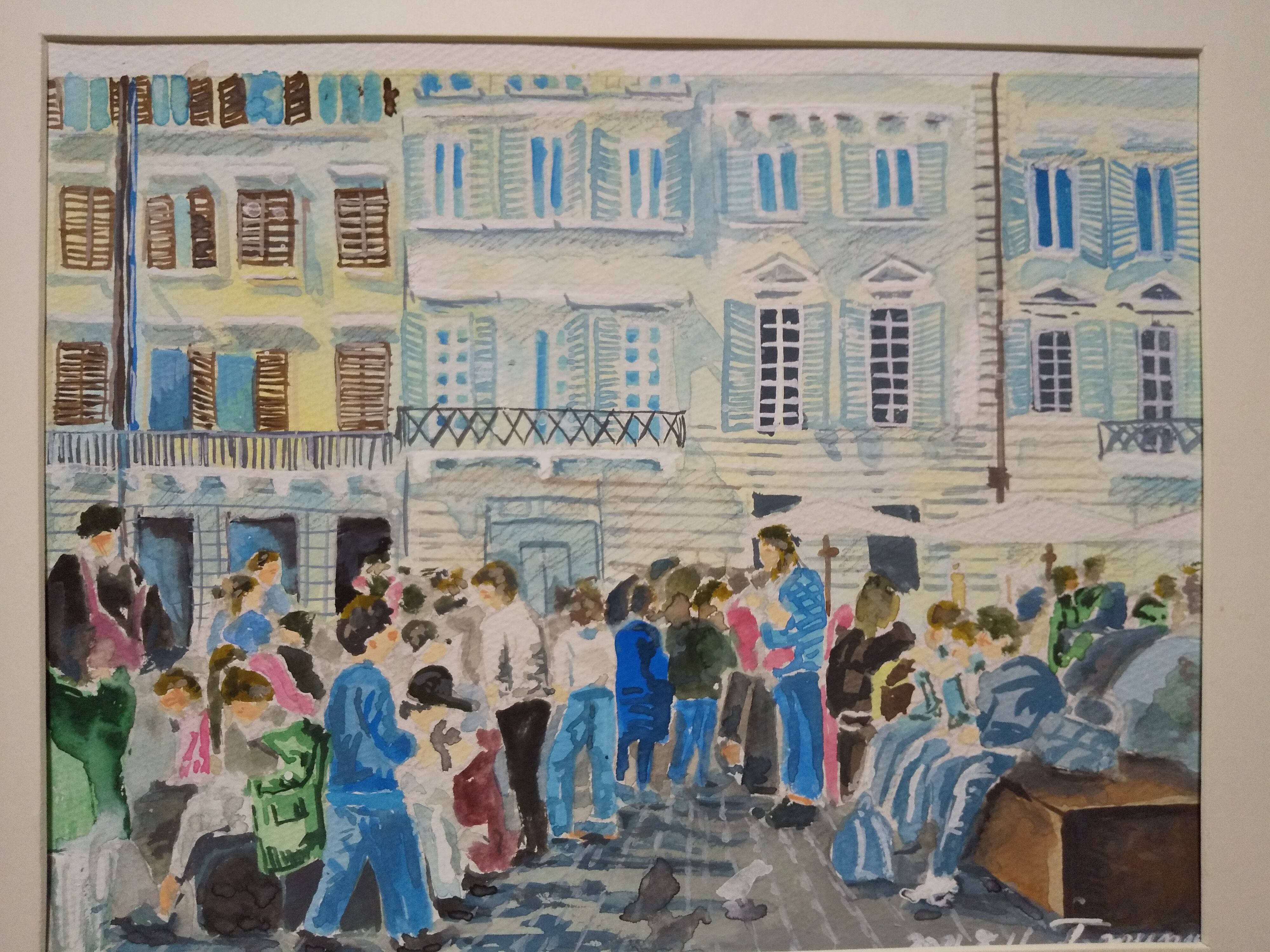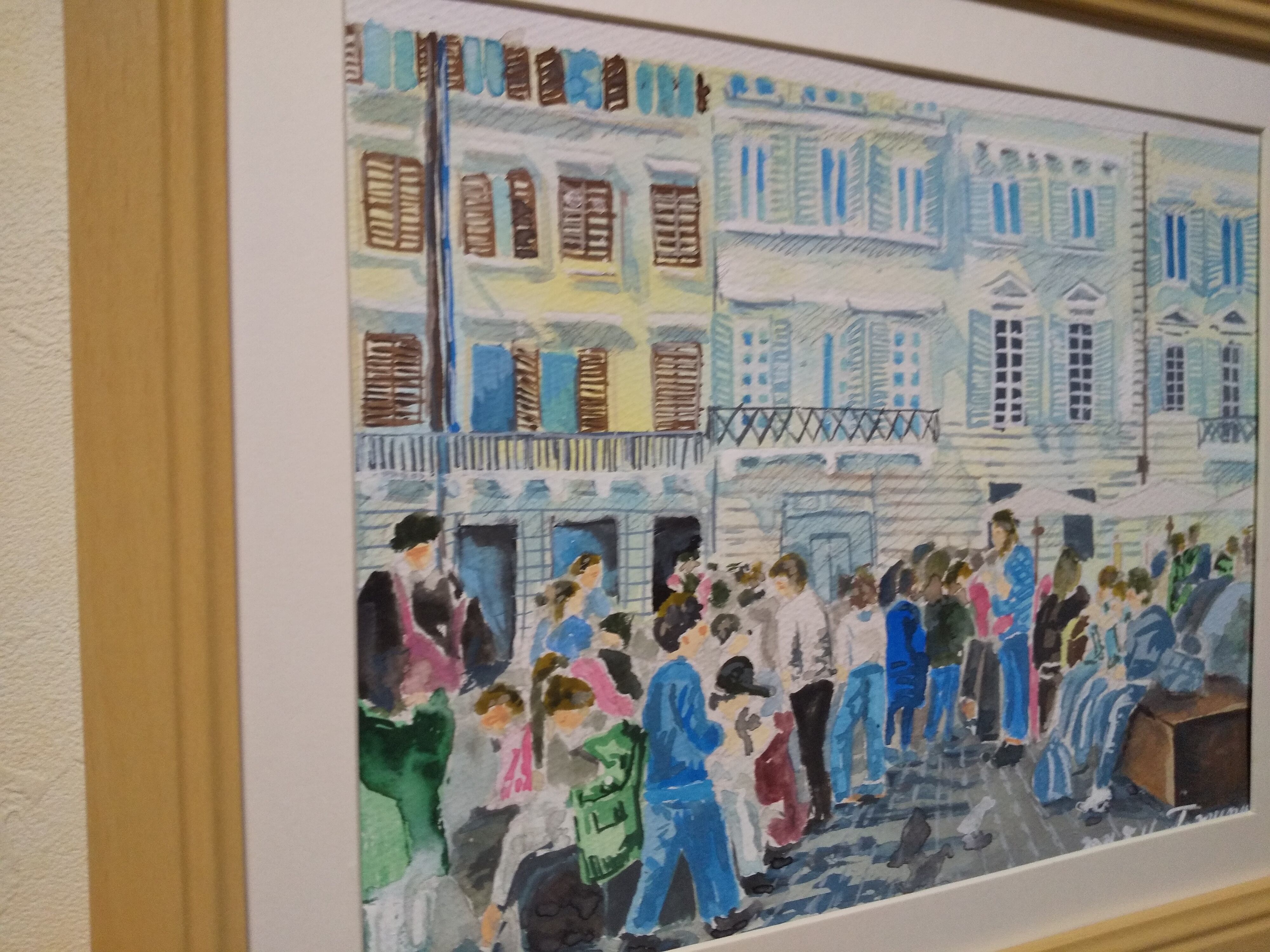 イタリア 楽しい界隈 水彩 額装 サイズ 縦26.5cm 横31.5cm 色 ナチュラル 額付き