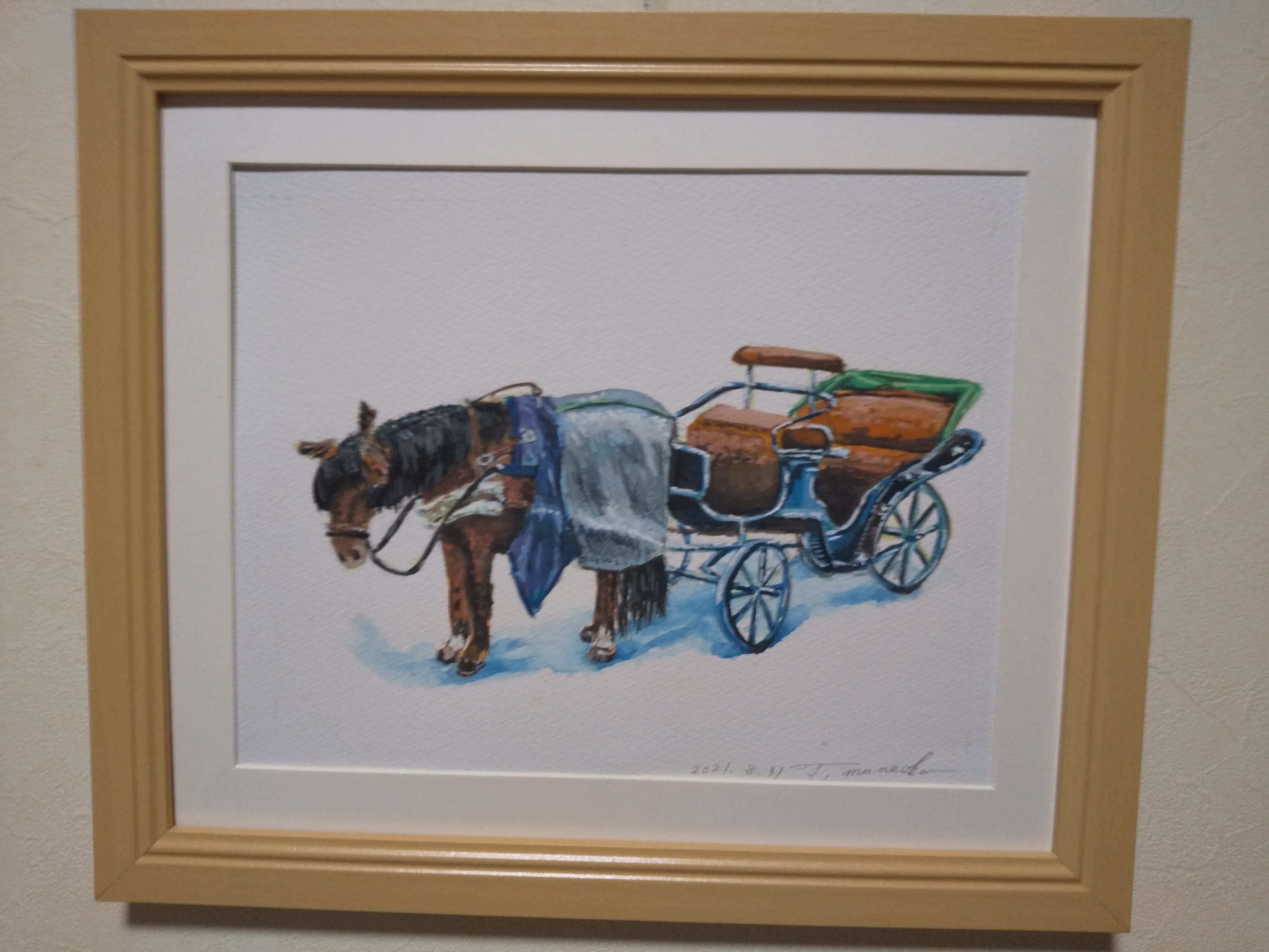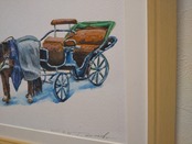 馬車 水彩 額装 サイズ 縦26.5cm 横31.5cm 色 ナチュラル 額付き