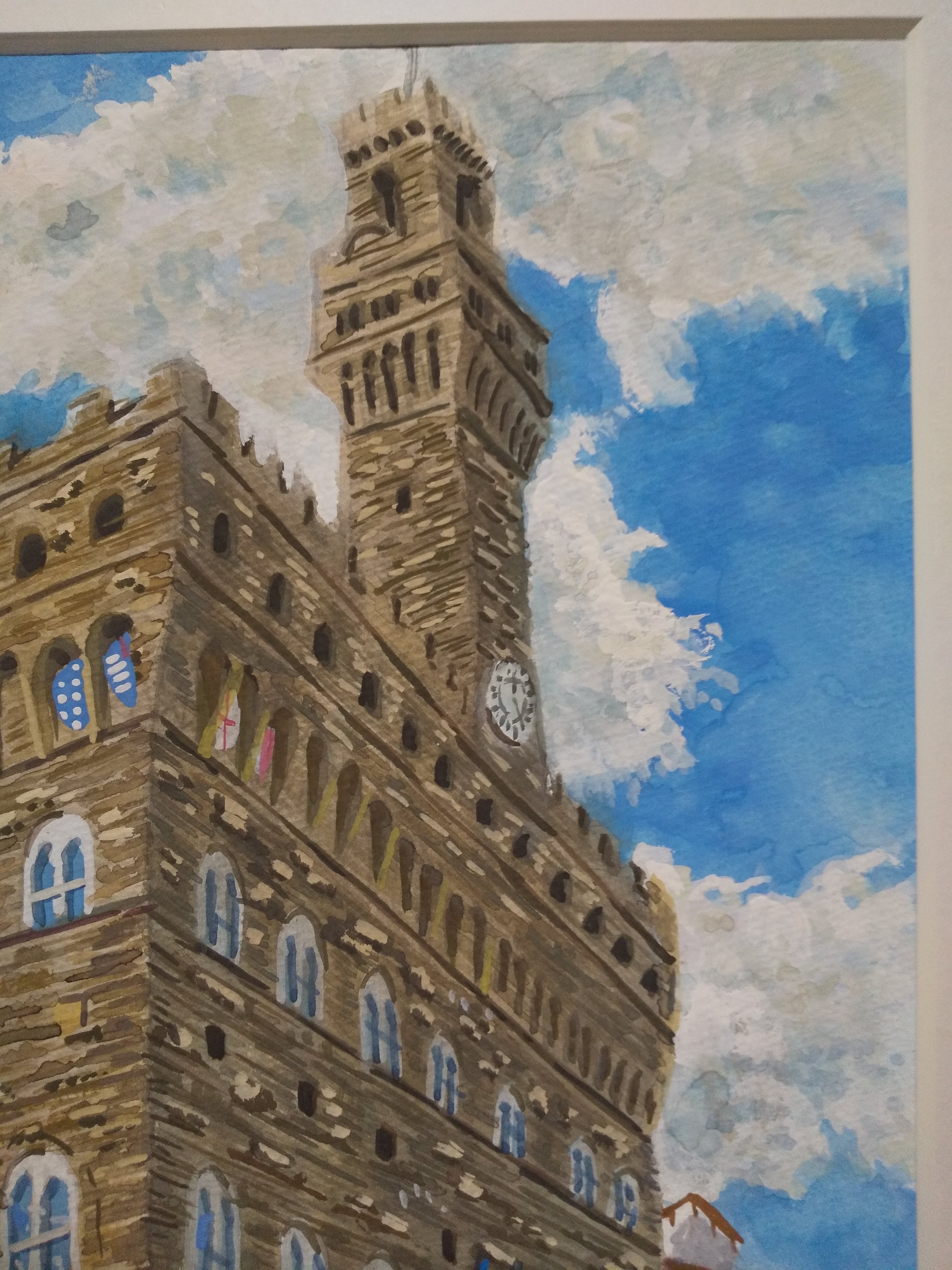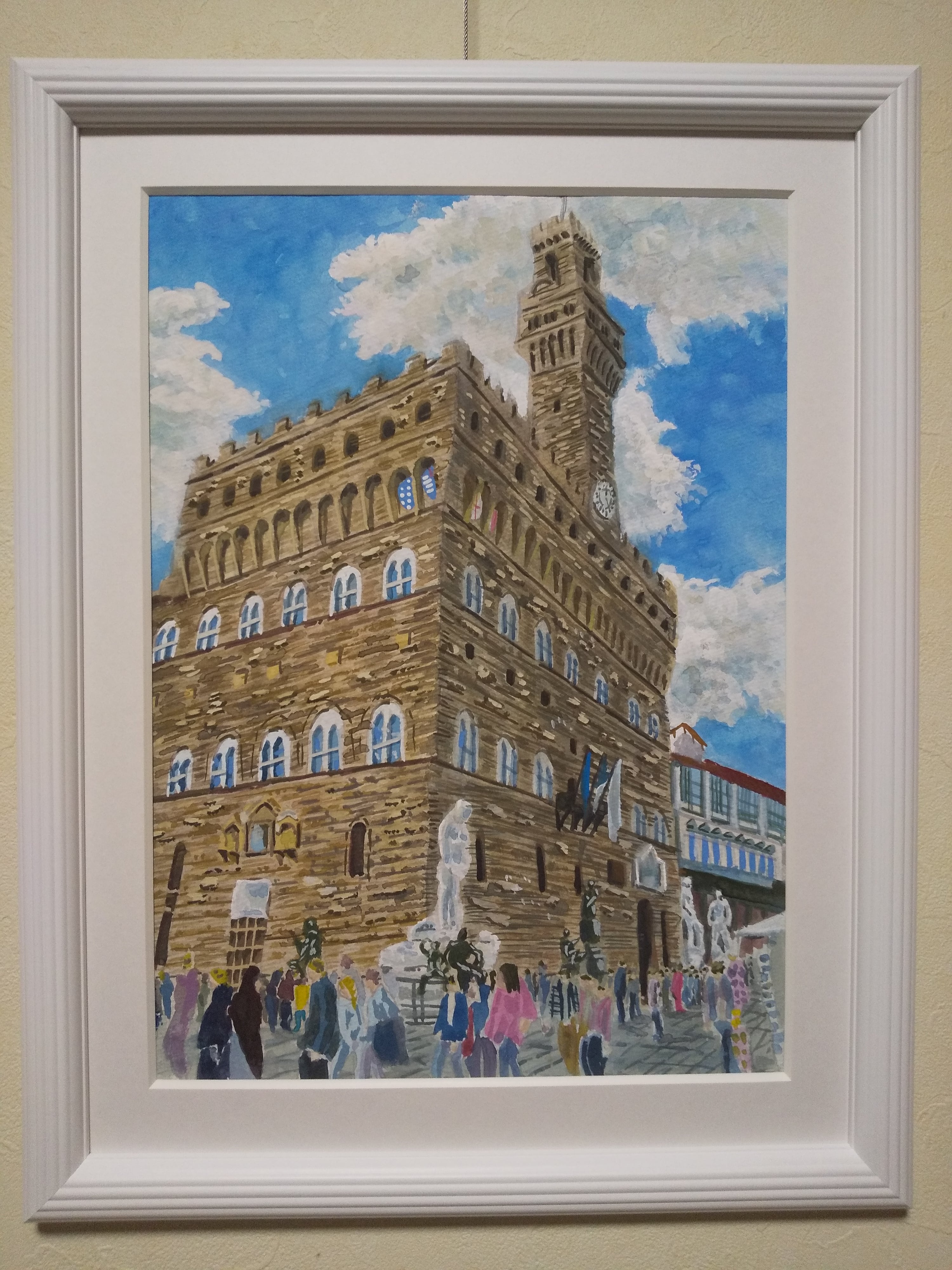 ヴェッキオ宮殿 水彩 額装 サイズ 縦42cm 横32cm 色 ホワイト 額付き