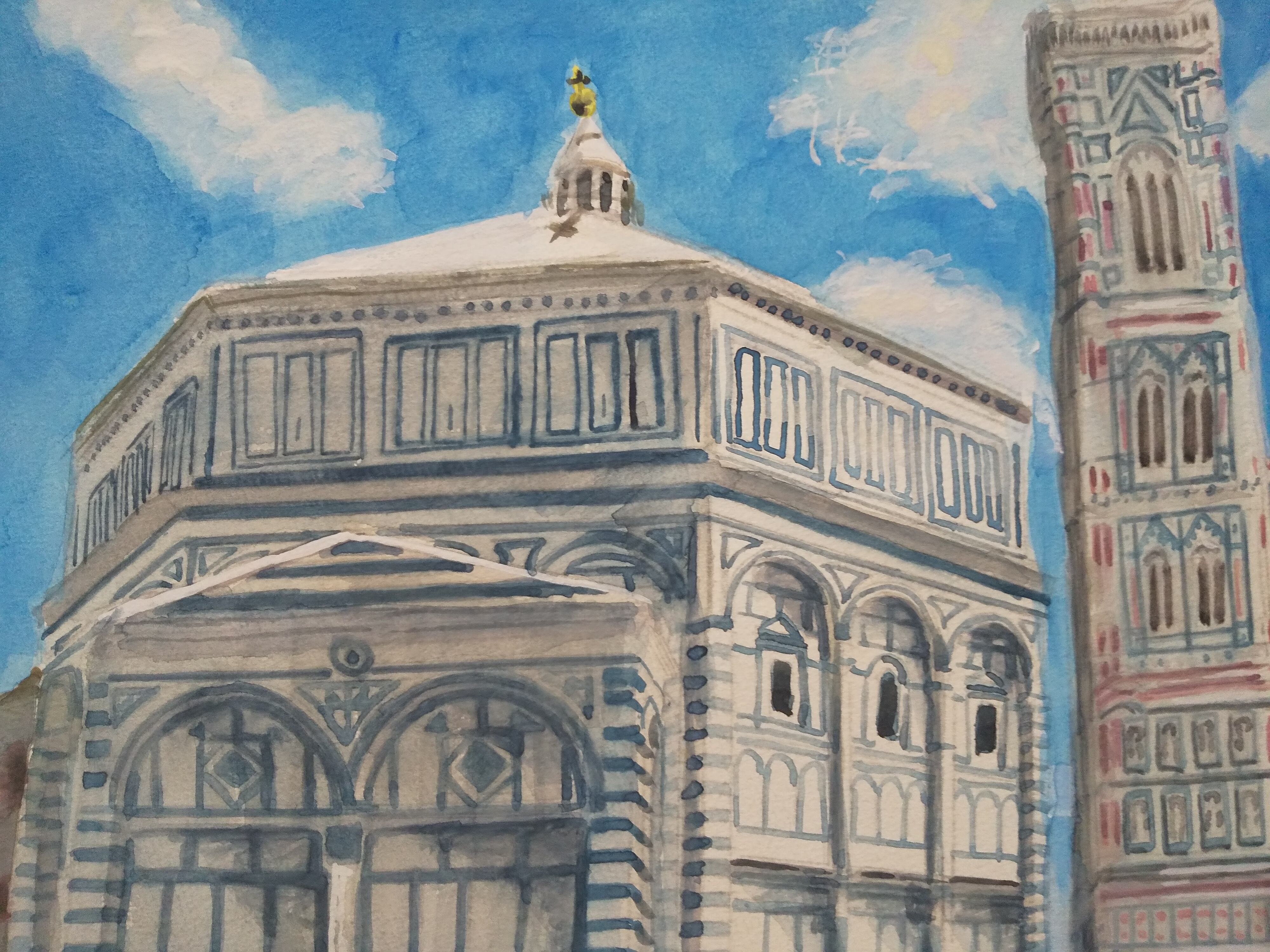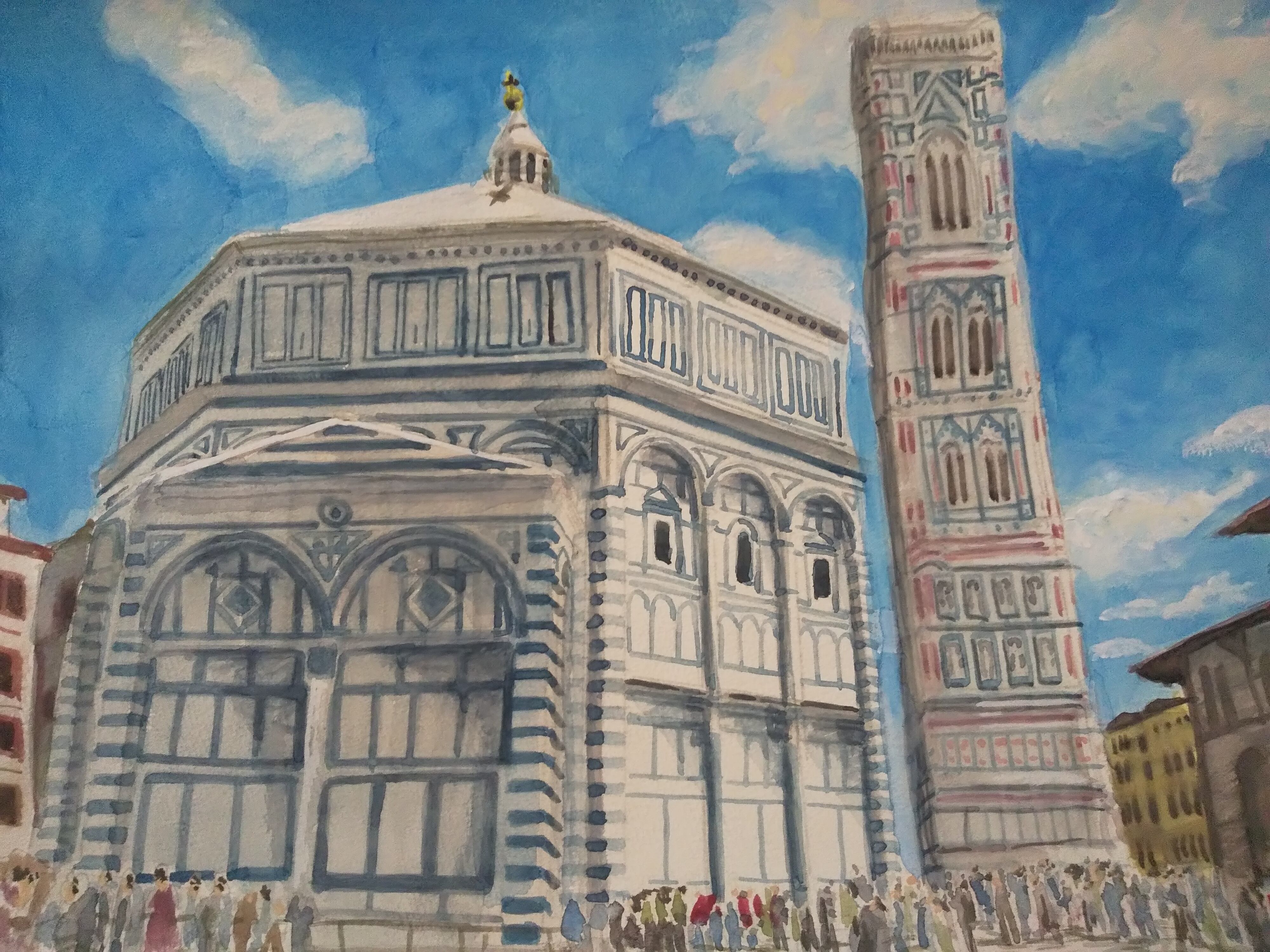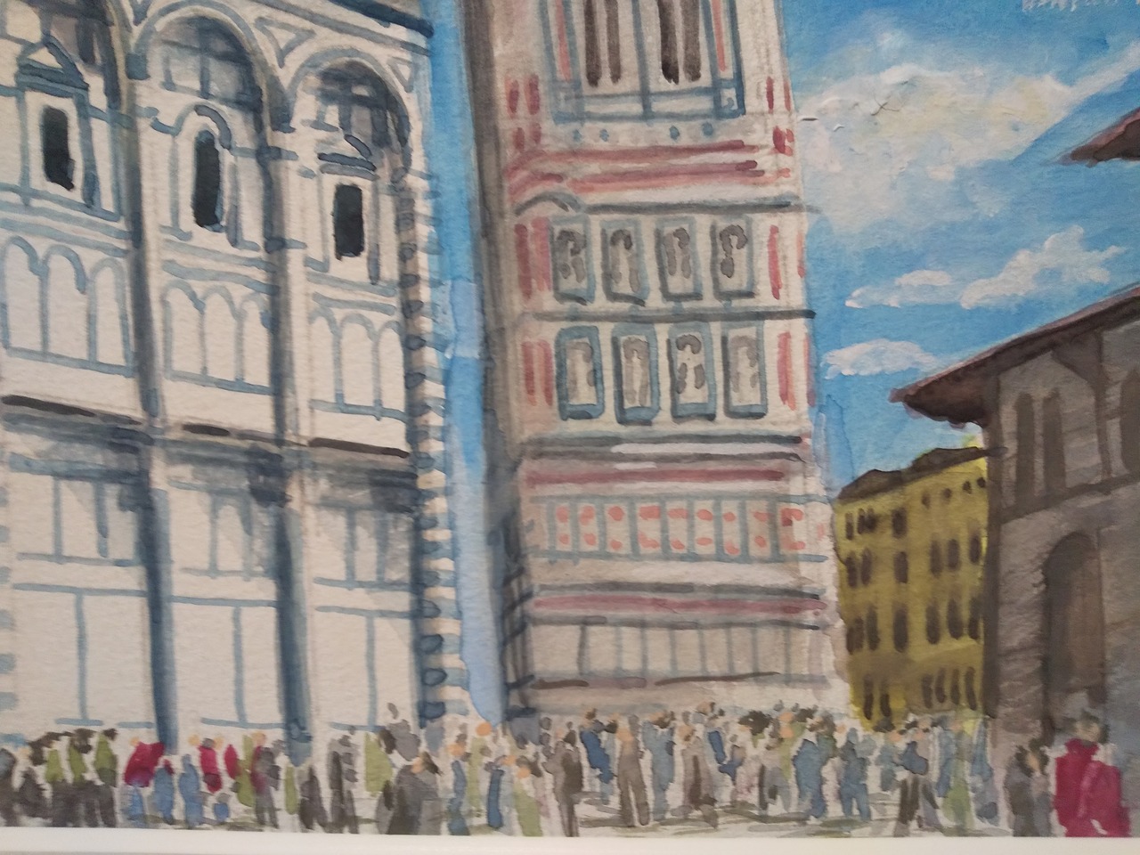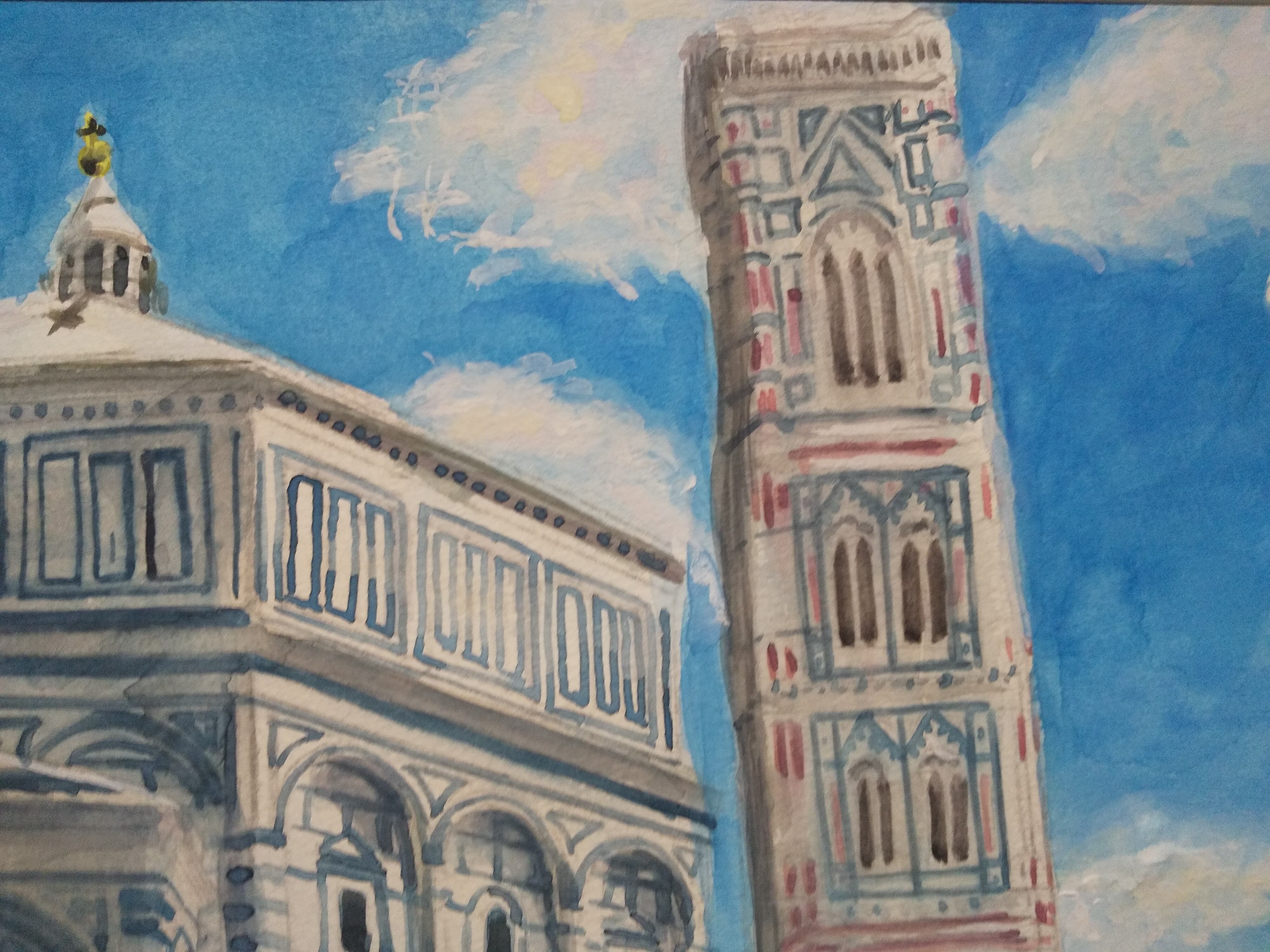 ドゥオーモ礼拝堂 水彩 額装 サイズ 横に42cm 縦32cm 色 ホワイト 額付き