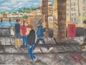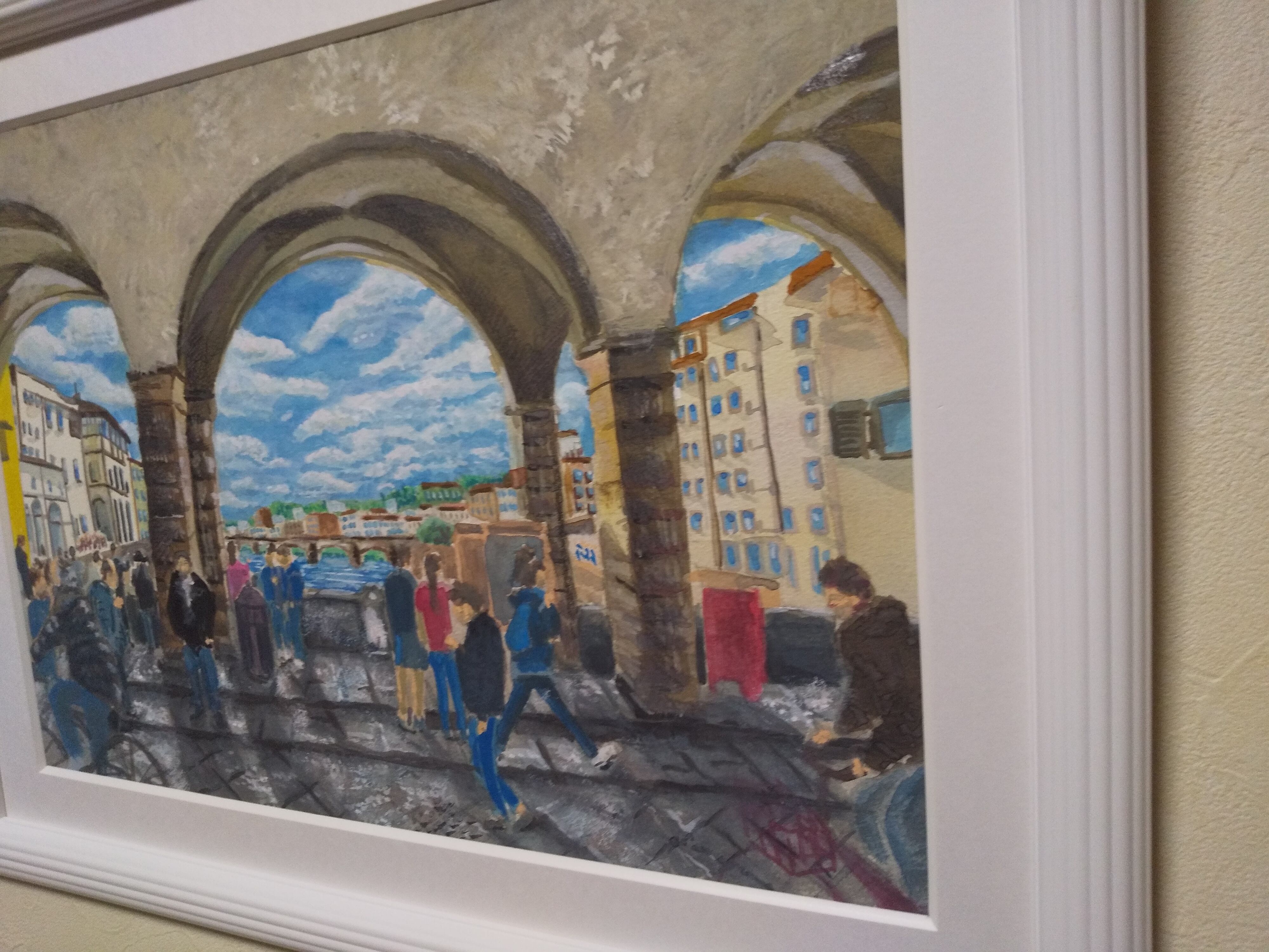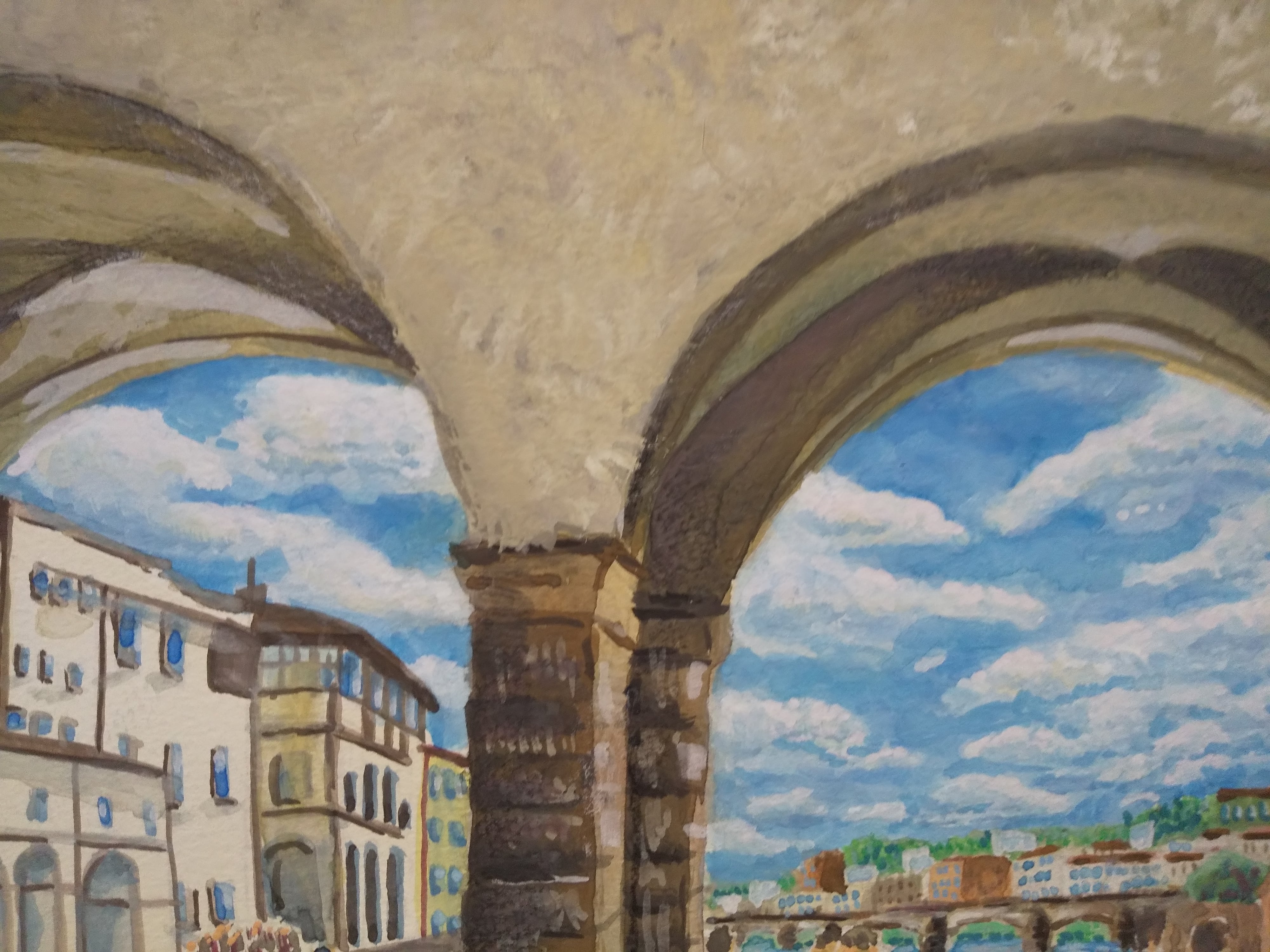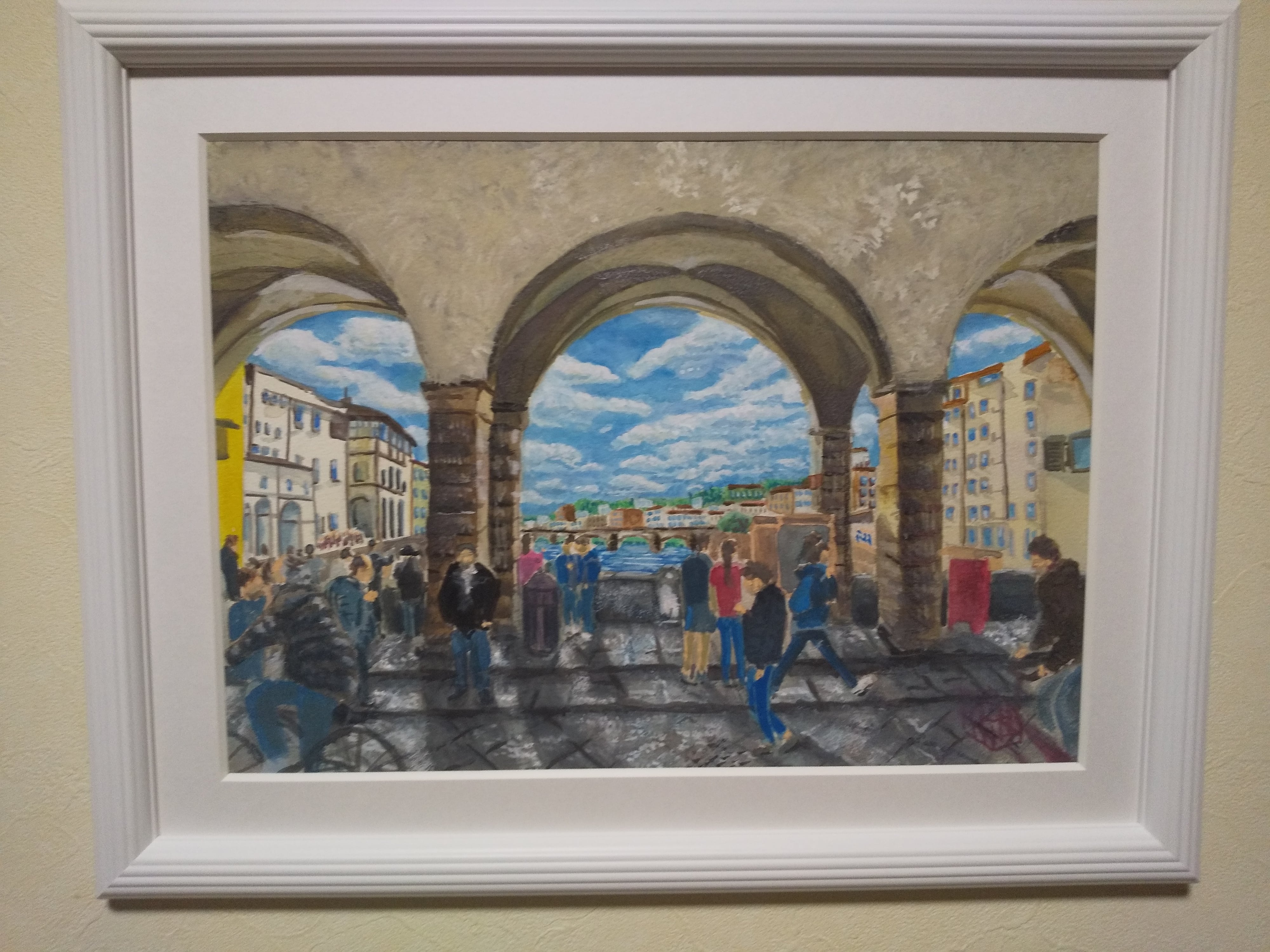ヴェッキオ橋から 水彩 額装 サイズ 横42cm 縦32cm 色 ホワイト 額付き