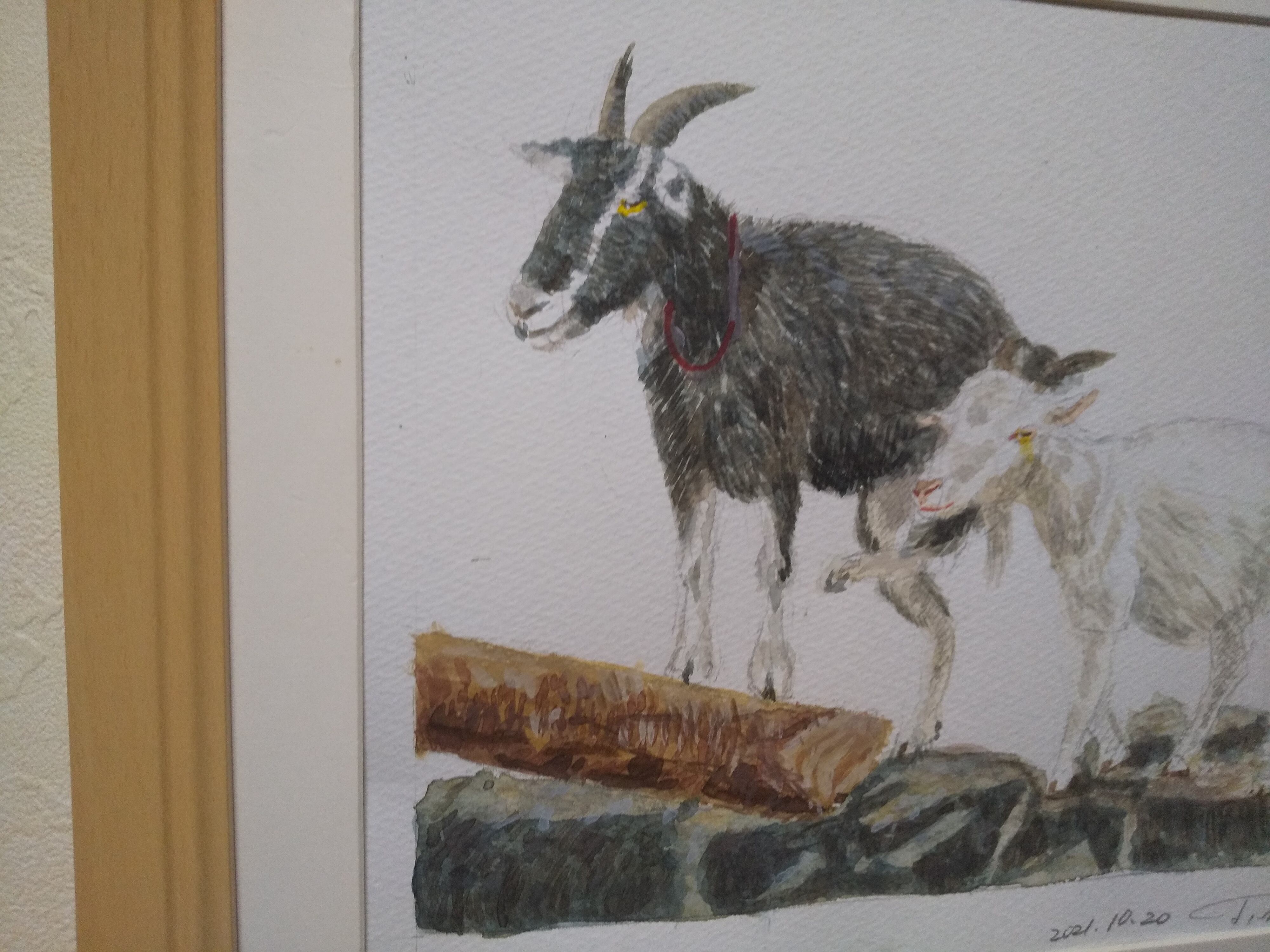 ヤギさん夫妻 水彩 額装 サイズ 縦26.5cm 横31.5cm 色 ナチュラル 額付き