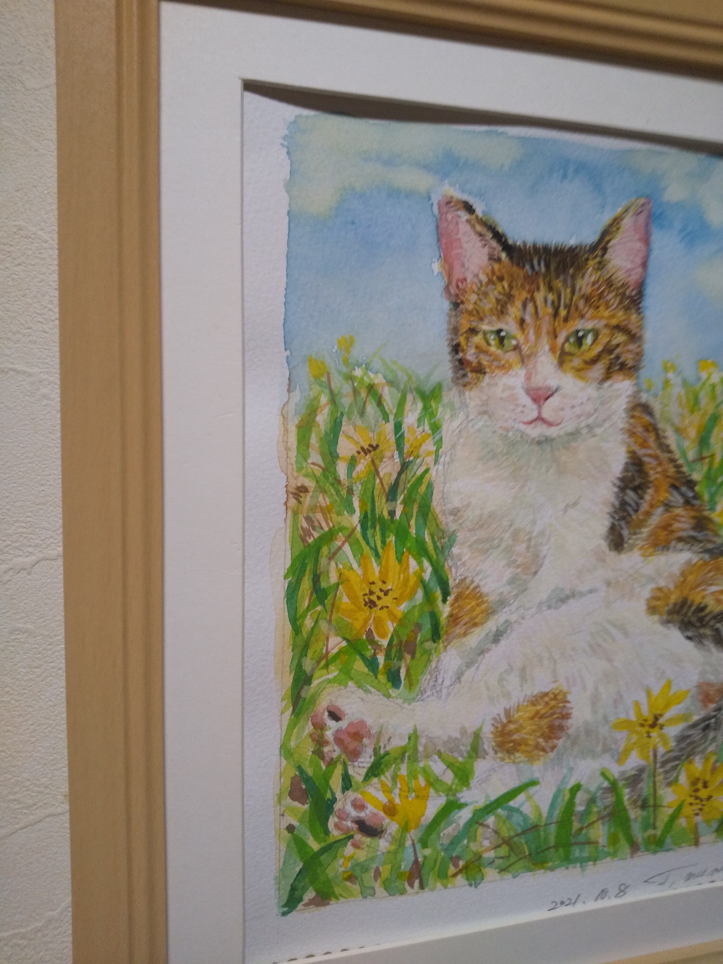 アサちゃ~ん 水彩 額装 サイズ 横26.5cm 縦31.5cm 色 ナチュラル 額付き