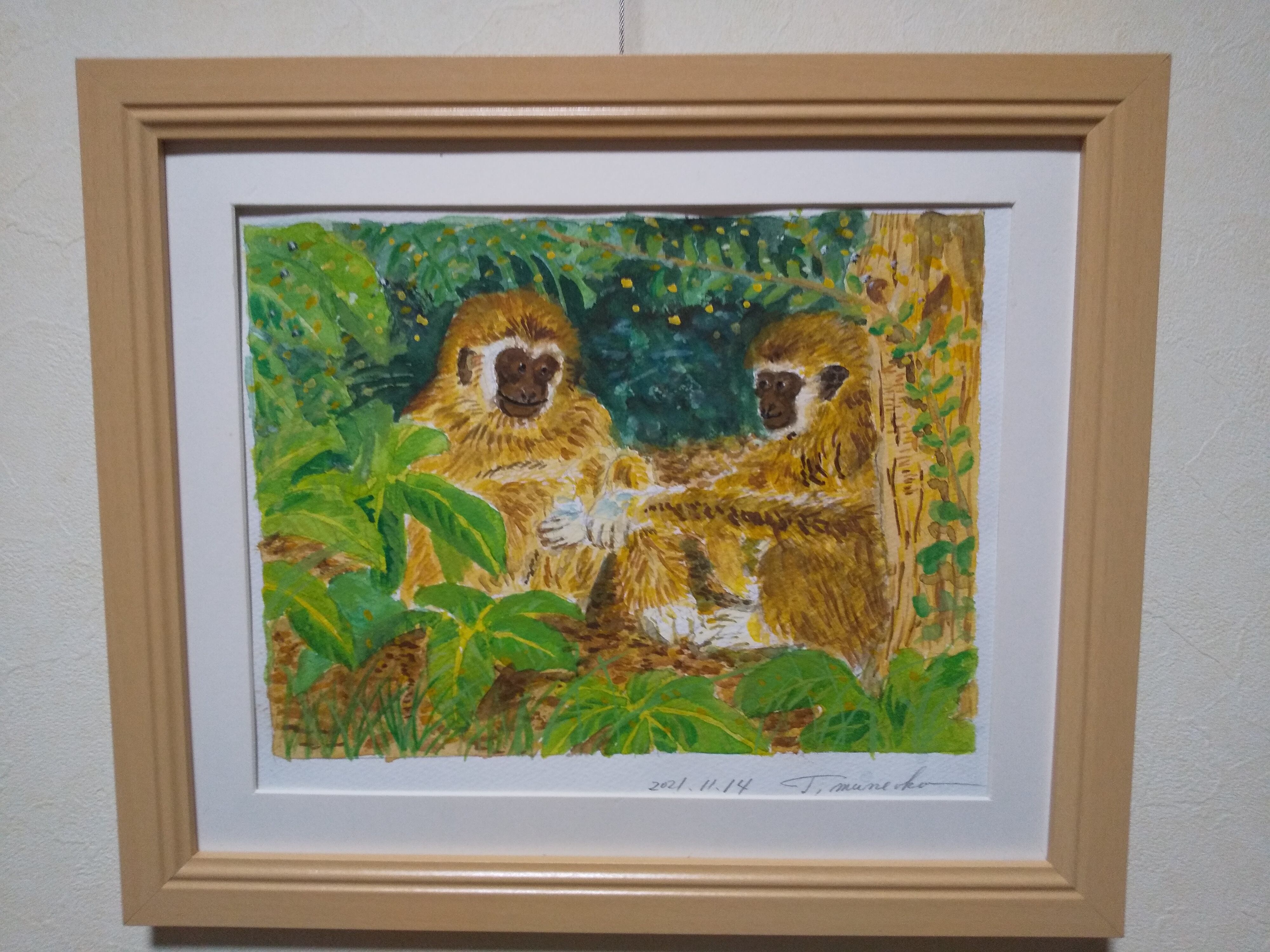 友達との時間 水彩 額装 サイズ 縦26.5cm 横31.5cm 色 ナチュラル