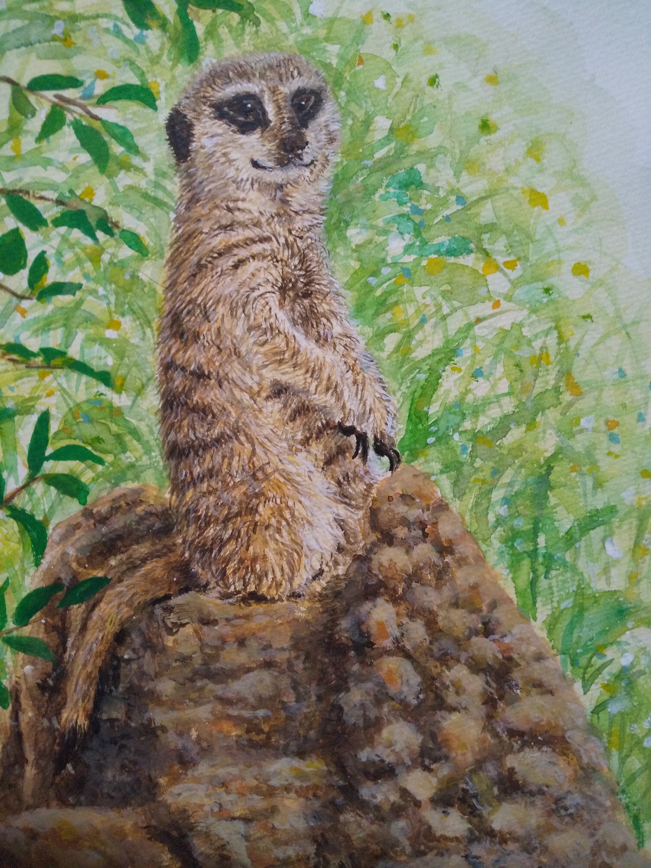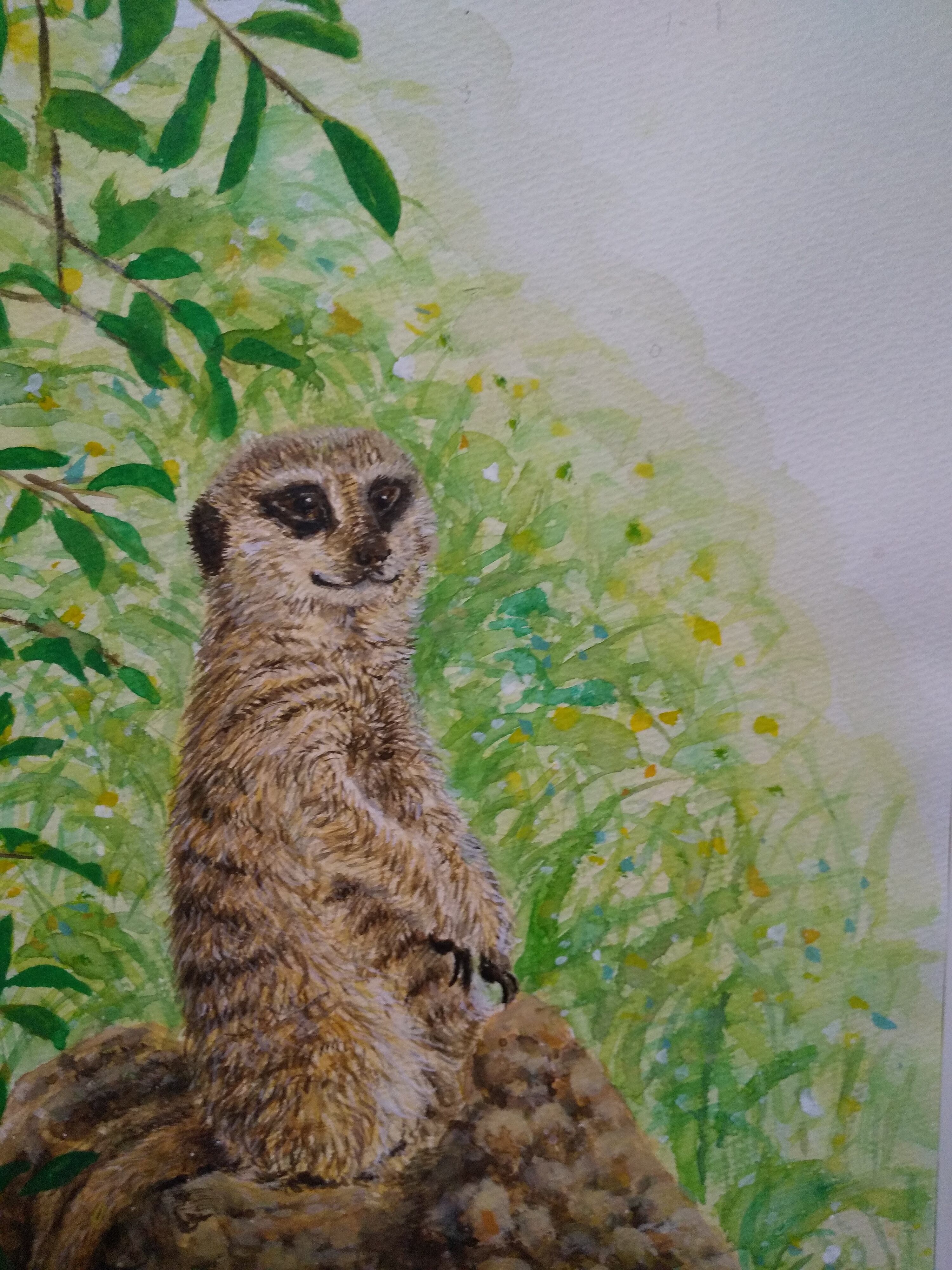 ミーアキャット 水彩 額装 サイズ 縦42cm 横32cm 色 ホワイト 額付き