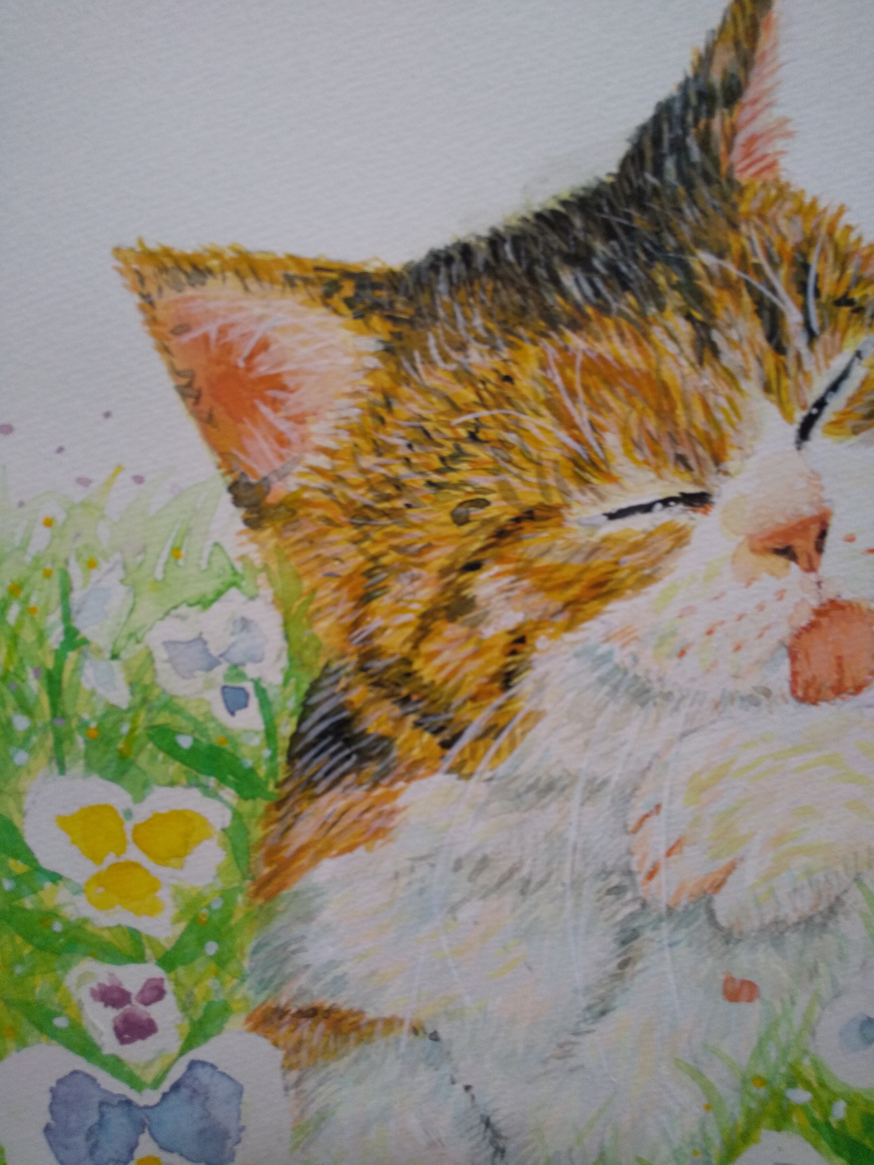 アサちゃんの毛づくろい 水彩