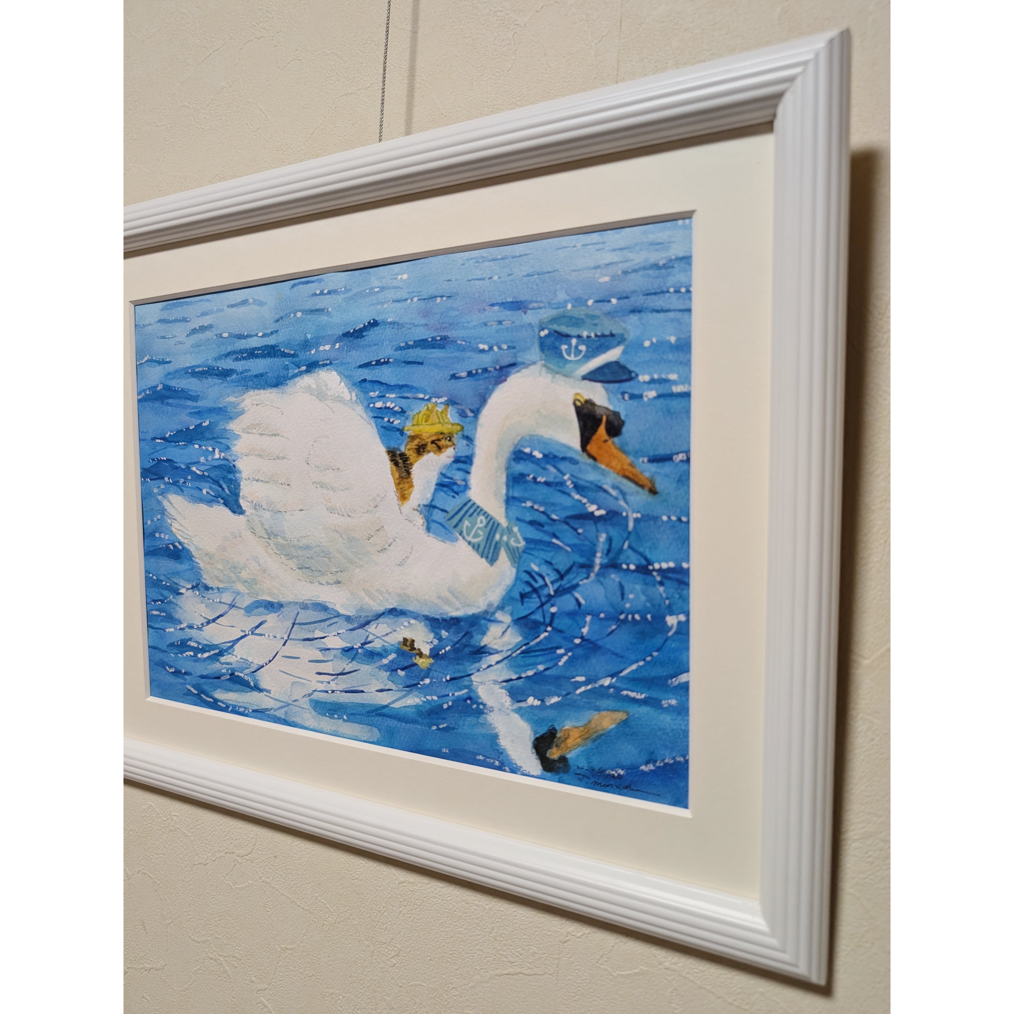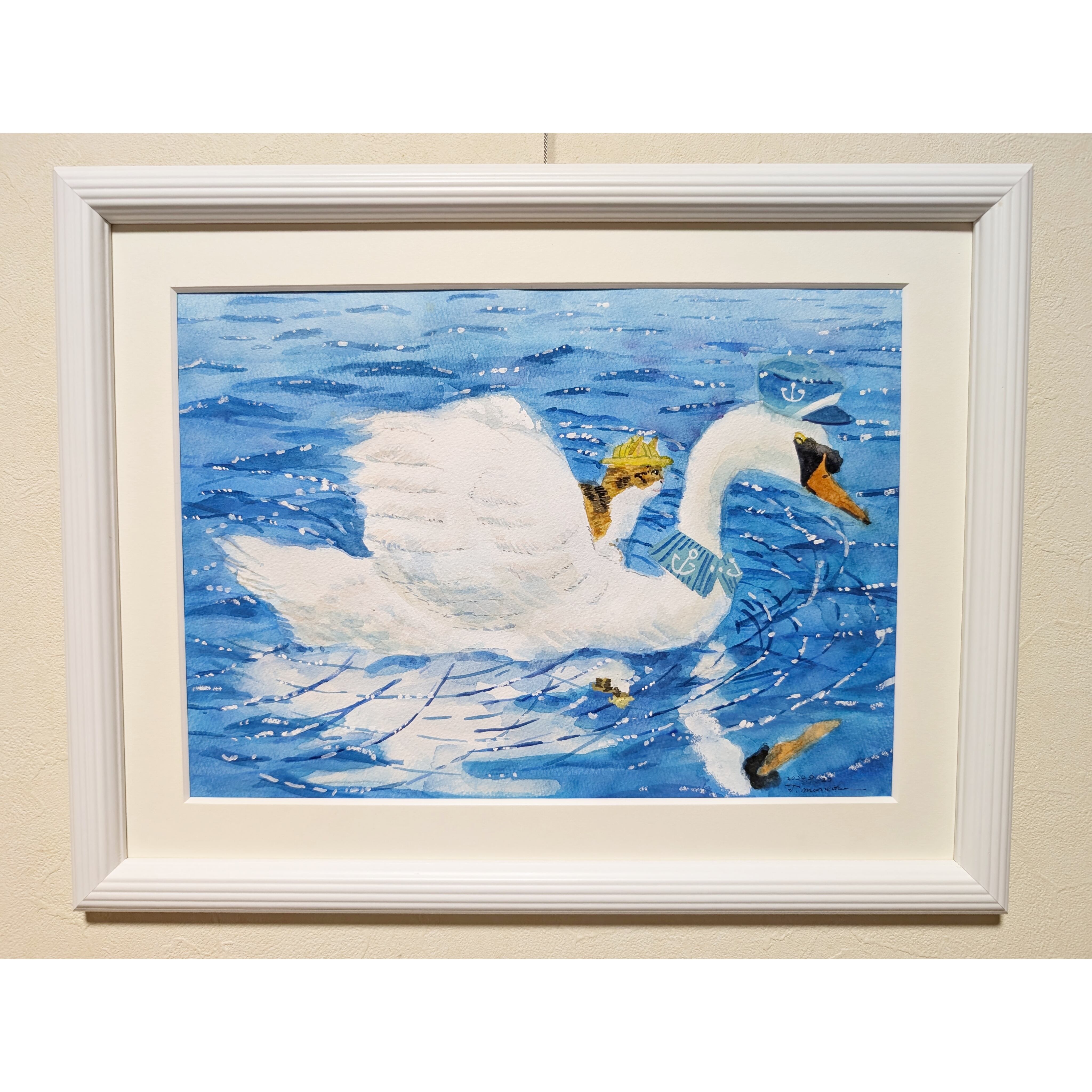額装 サイズ 横42cm 縦32cm 色 ホワイト 額付き 絵画の種類...水彩画 形式...額縁入り 主題...動物 主な画材...水彩絵の具